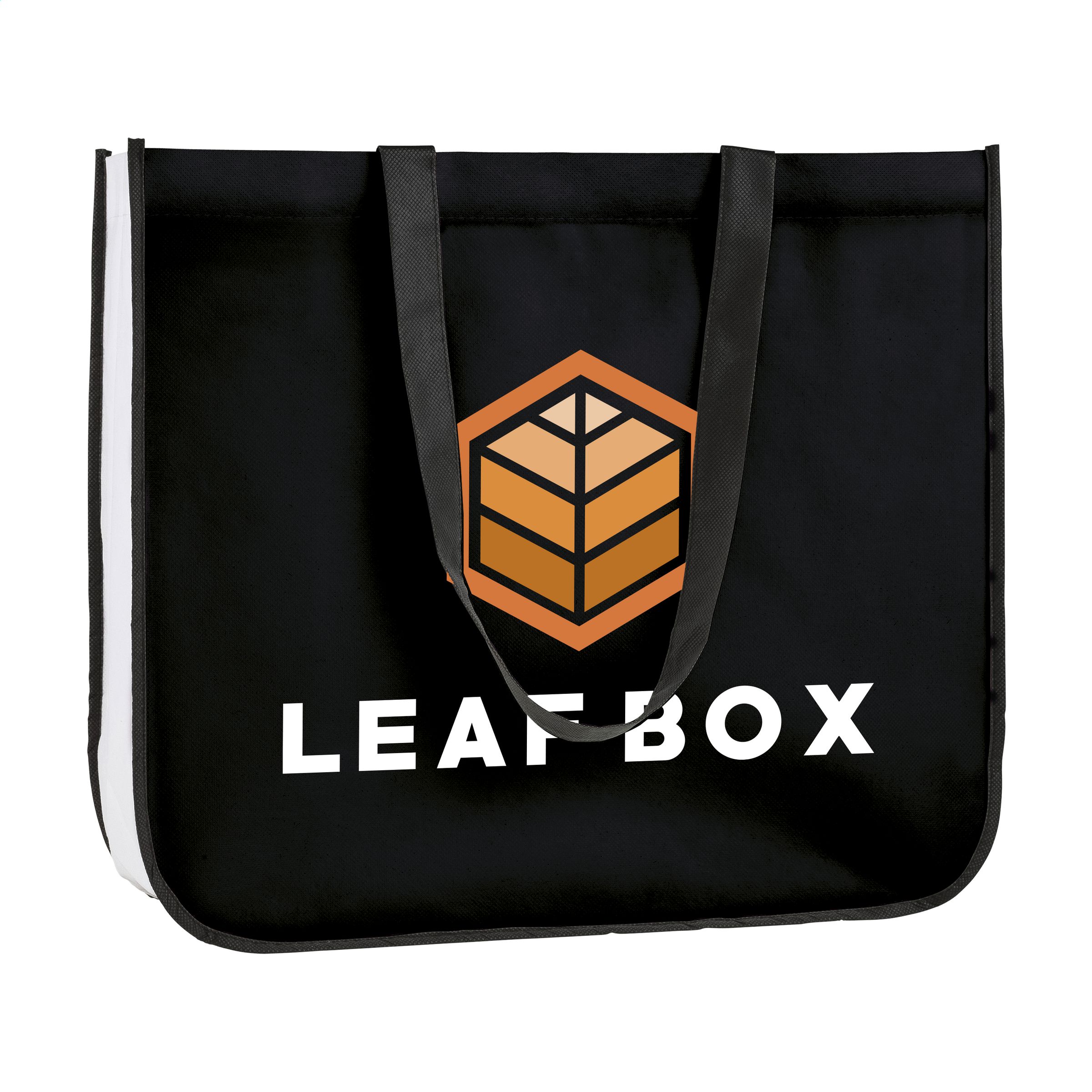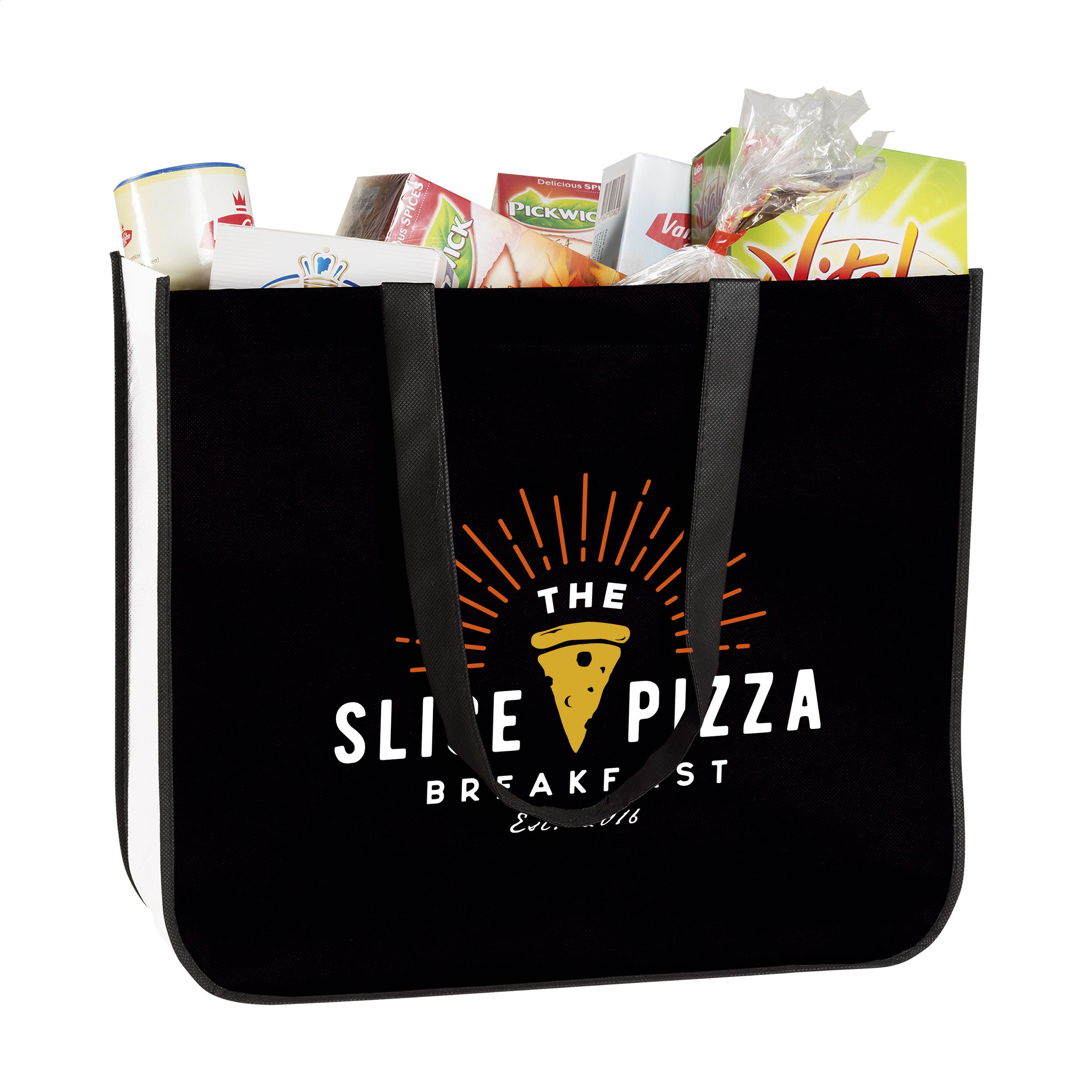Extra large non-woven (100 g/m²) shopping bag, with long handles. Sides and base in contrasting, striking white.