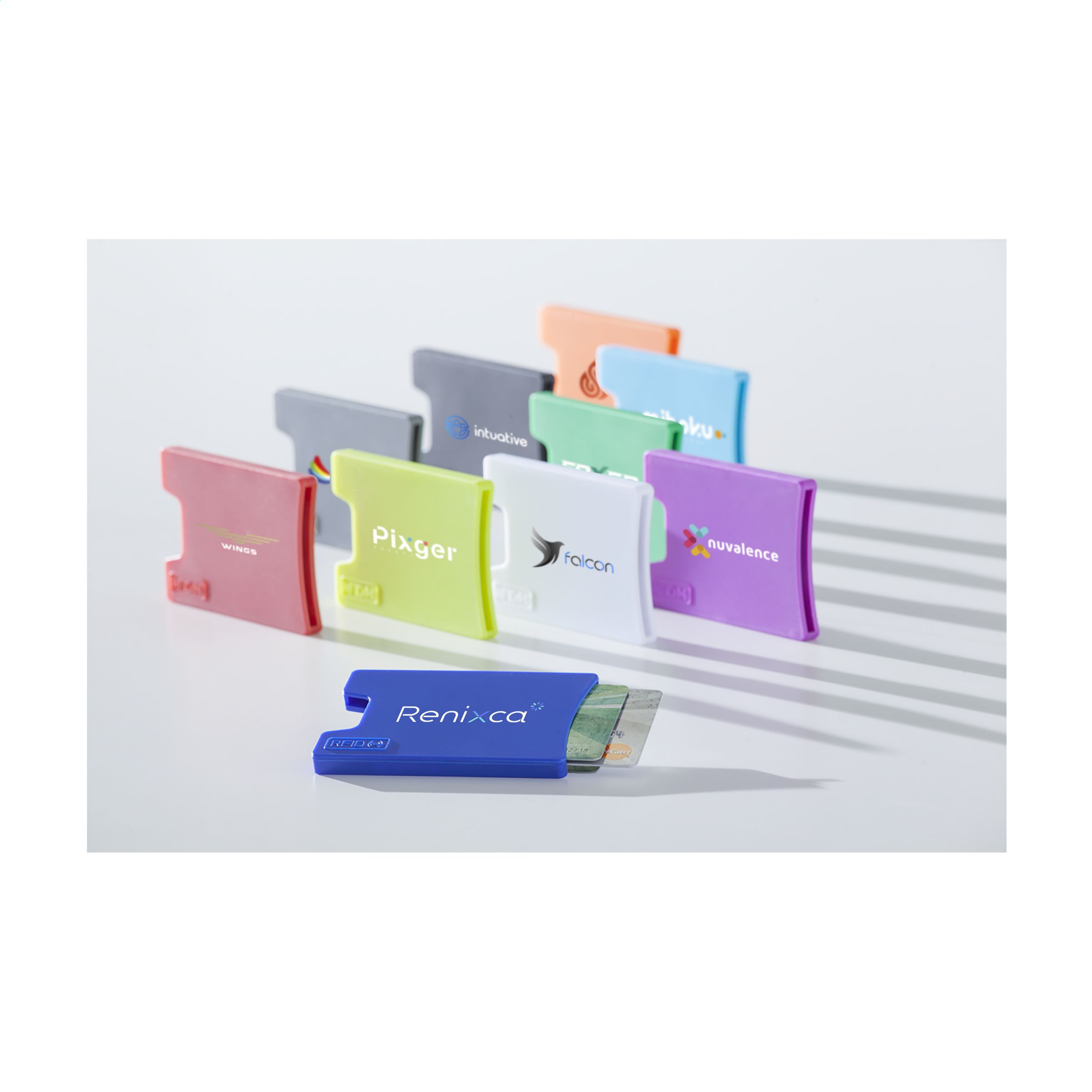 RFID card holder made of ABS. Designed to block RFID-readers from scanning identitiy cards and credit cards.