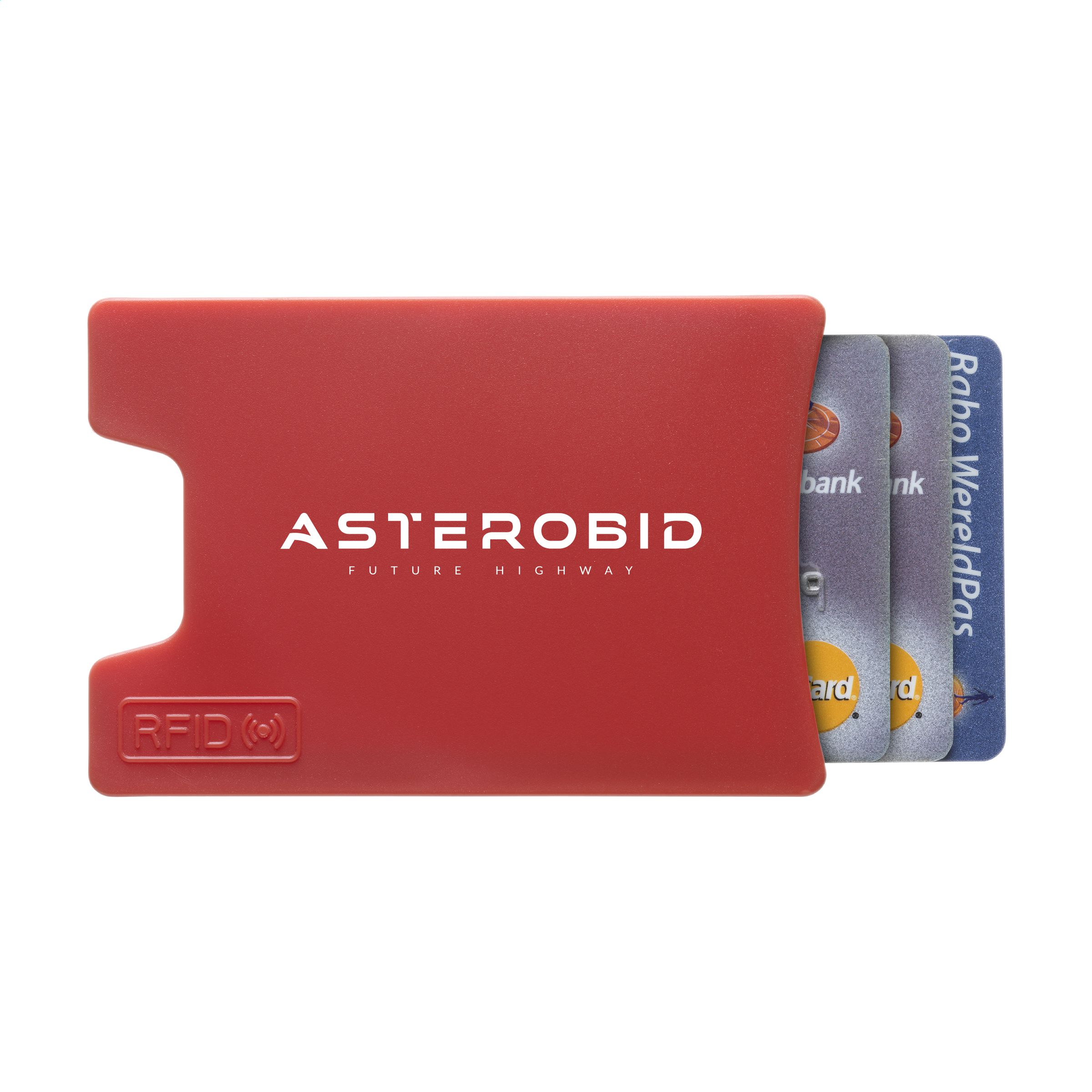 RFID card holder made of ABS. Designed to block RFID-readers from scanning identitiy cards and credit cards.