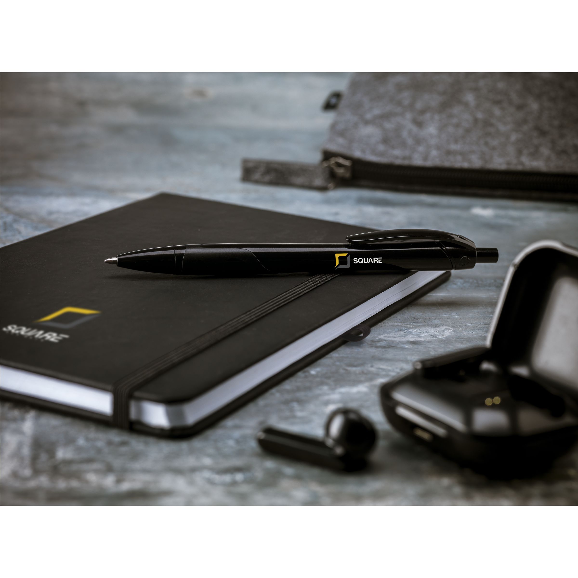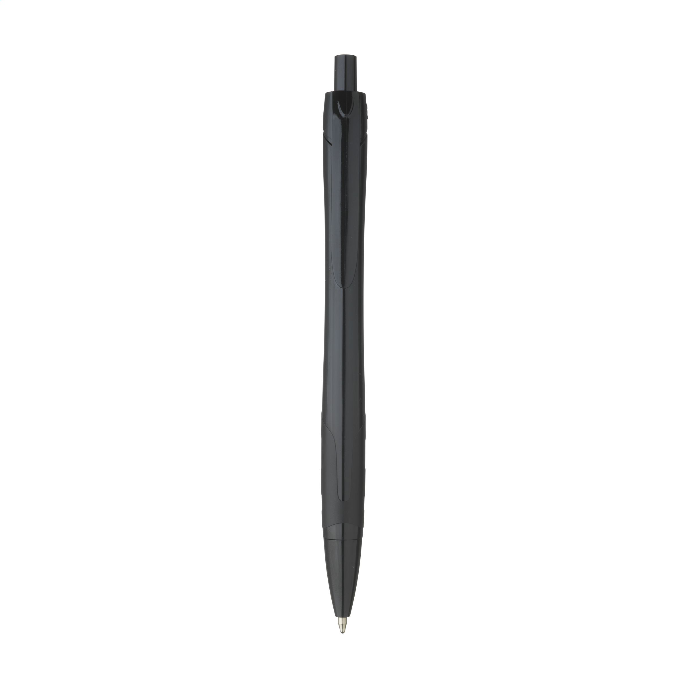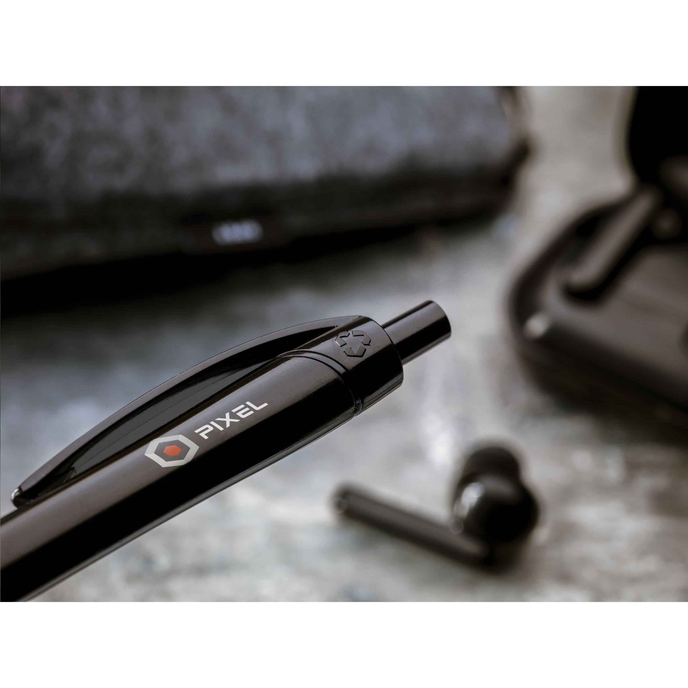 Blue ink ballpoint pen made almost entirely from recycled PET bottles. Sustainable, environmentally friendly and ecologically responsible product.