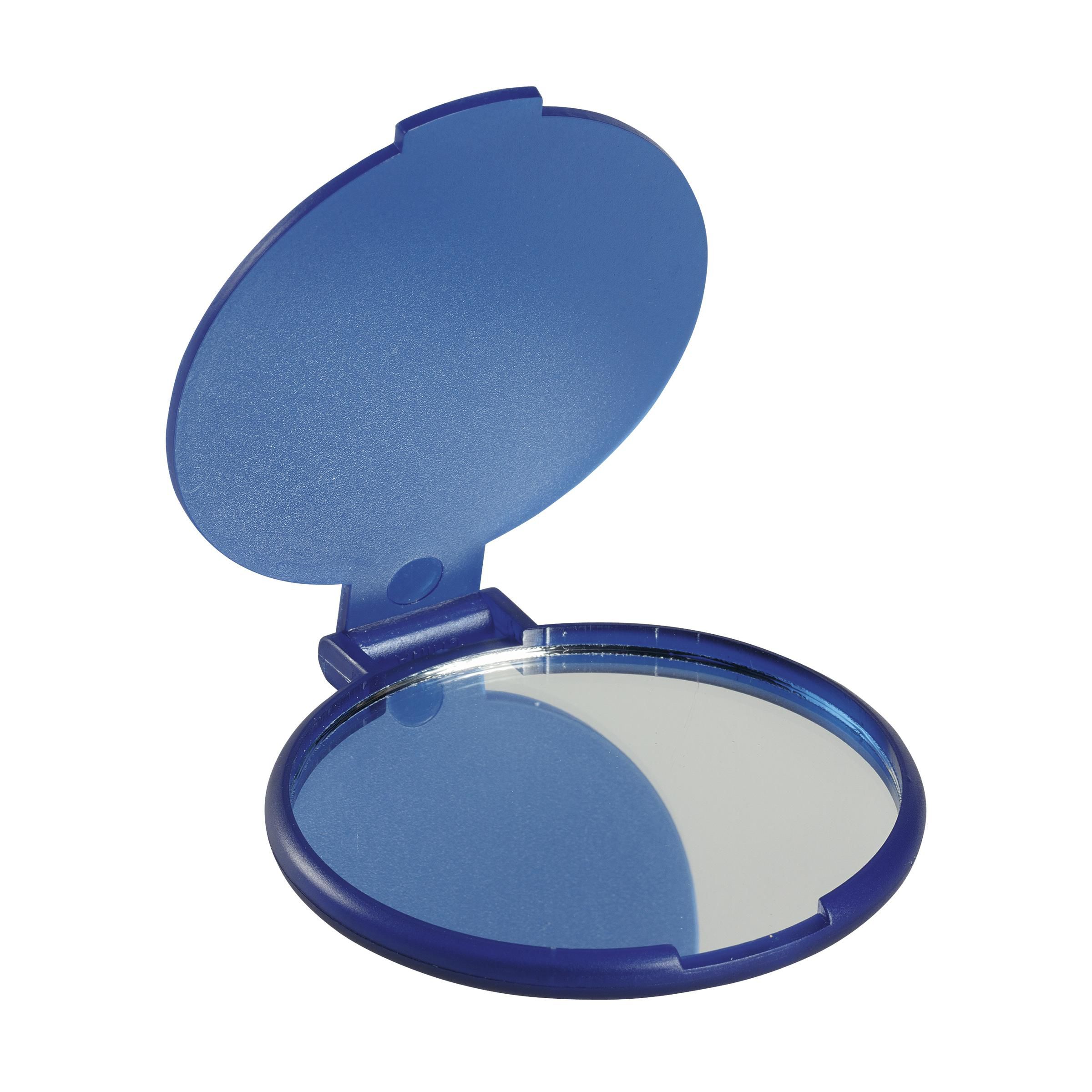 Compact mirror in a plastic holder with protective cover.