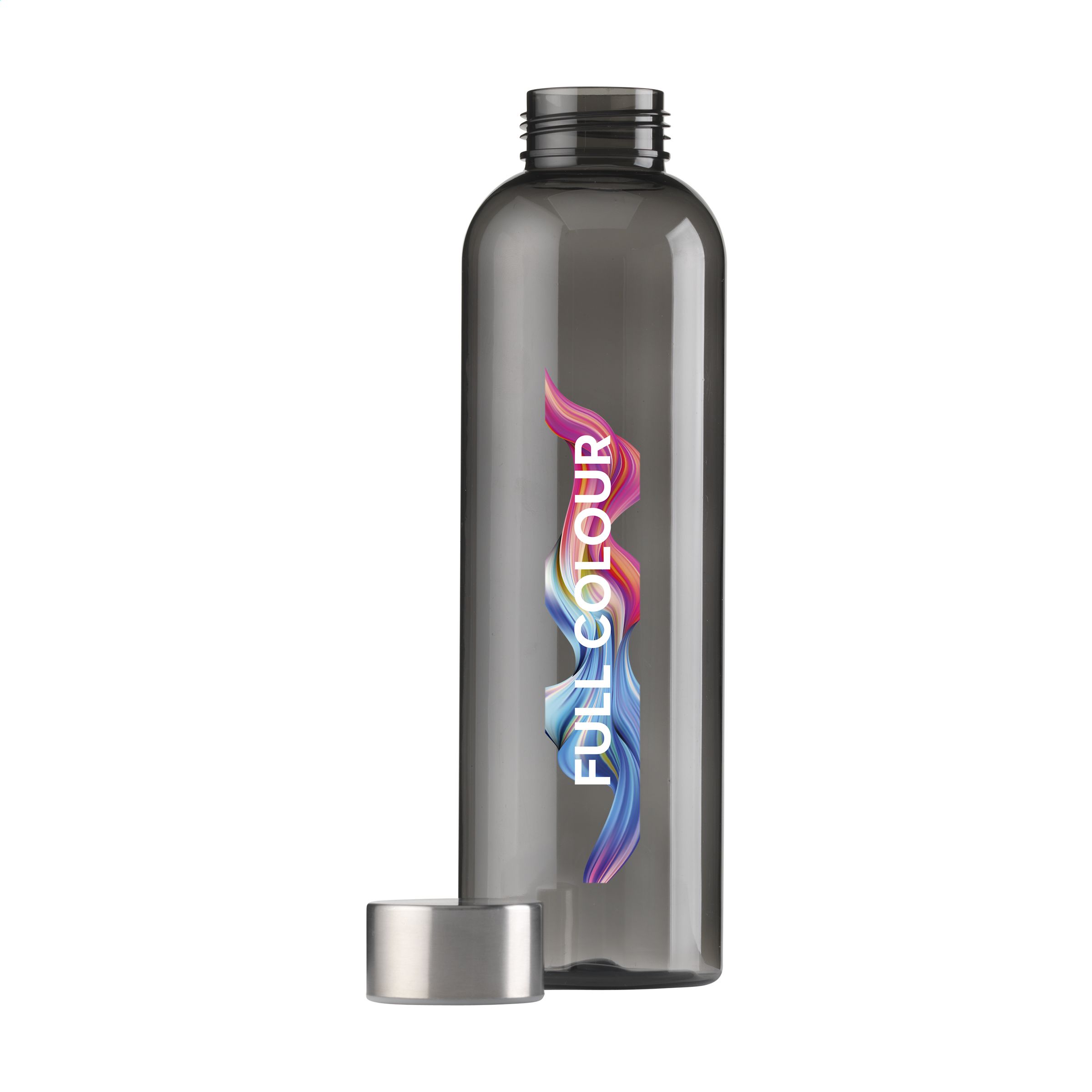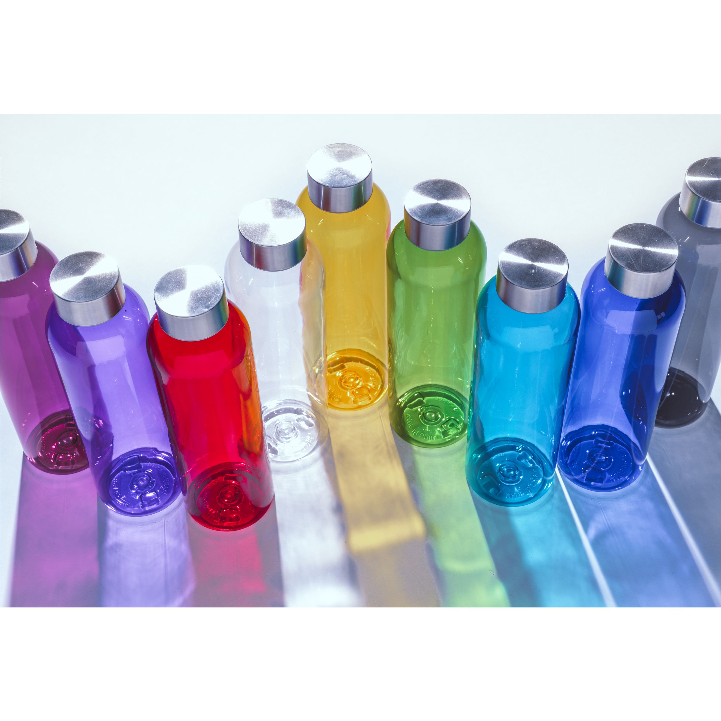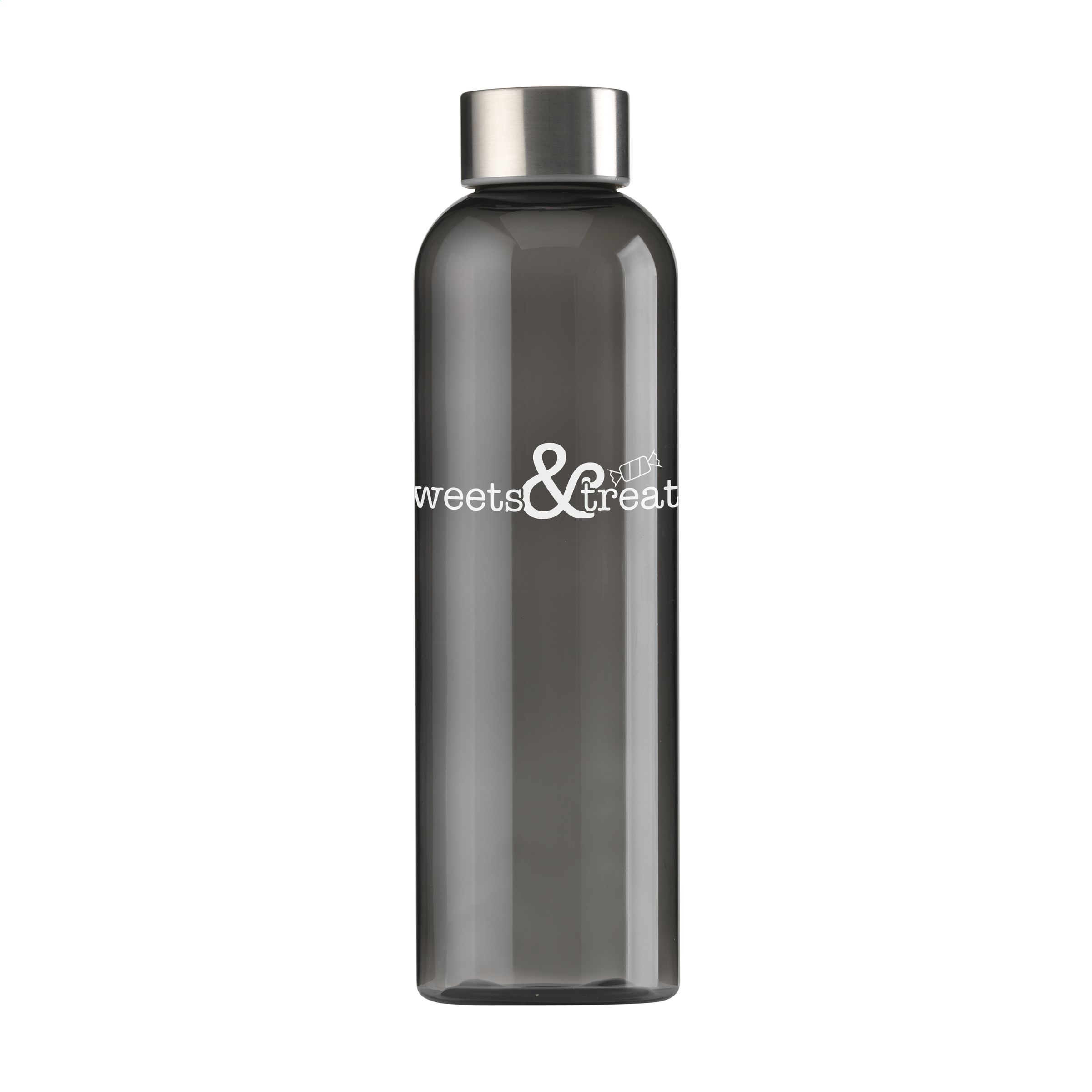 Transparent, BPA-free water bottle made of durable Tritan. With stainless steel screw top. The sleek design catches the eye immediately and is extremely comfortable. Leakproof. Capacity 650 ml.