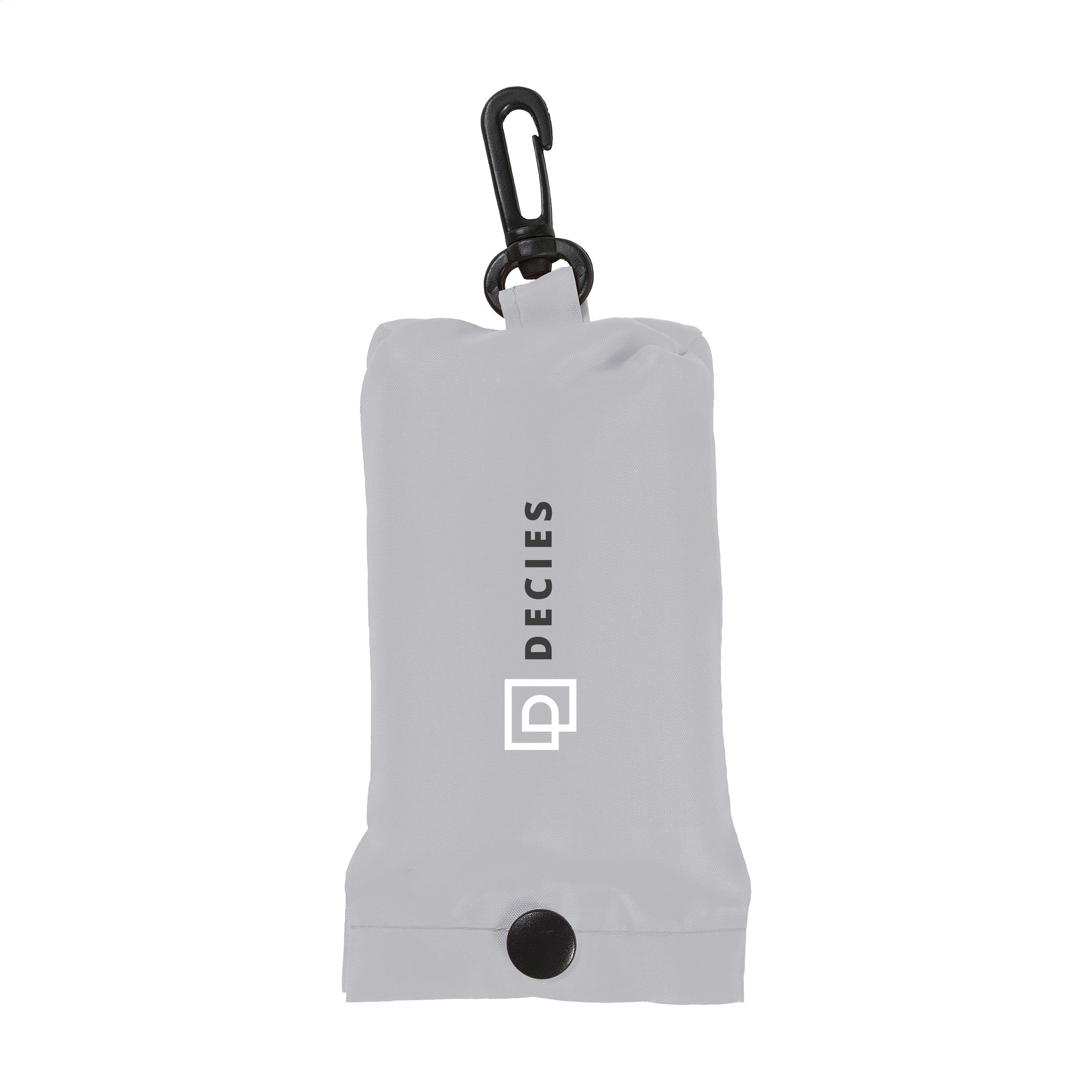 Foldable shopping bag made of 190T polyester. In a pouch with popper and carabiner hook. Meas. unfolded 53 x 38 cm.
