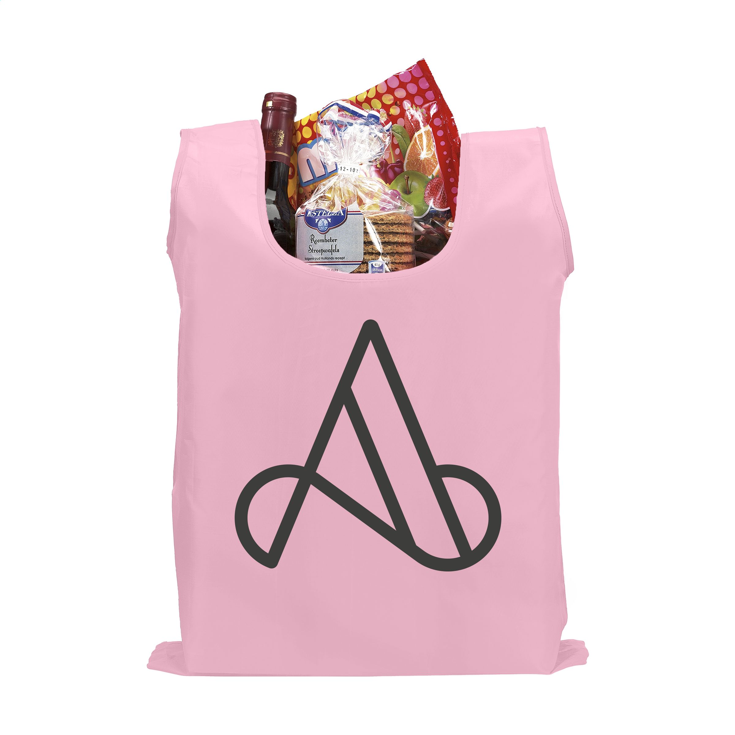 Foldable shopping bag made of 190T polyester. In a pouch with popper and carabiner hook. Meas. unfolded 53 x 38 cm.
