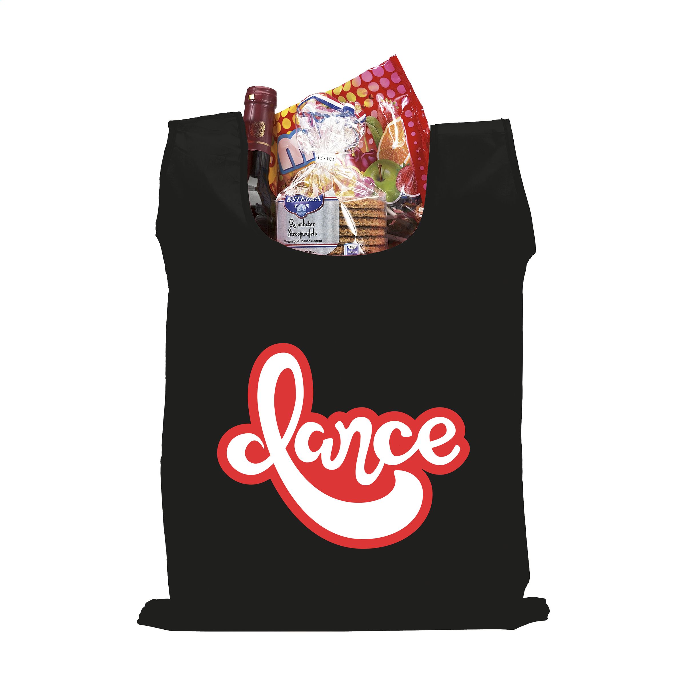 Foldable shopping bag made of 190T polyester. In a pouch with popper and carabiner hook. Meas. unfolded 53 x 38 cm.