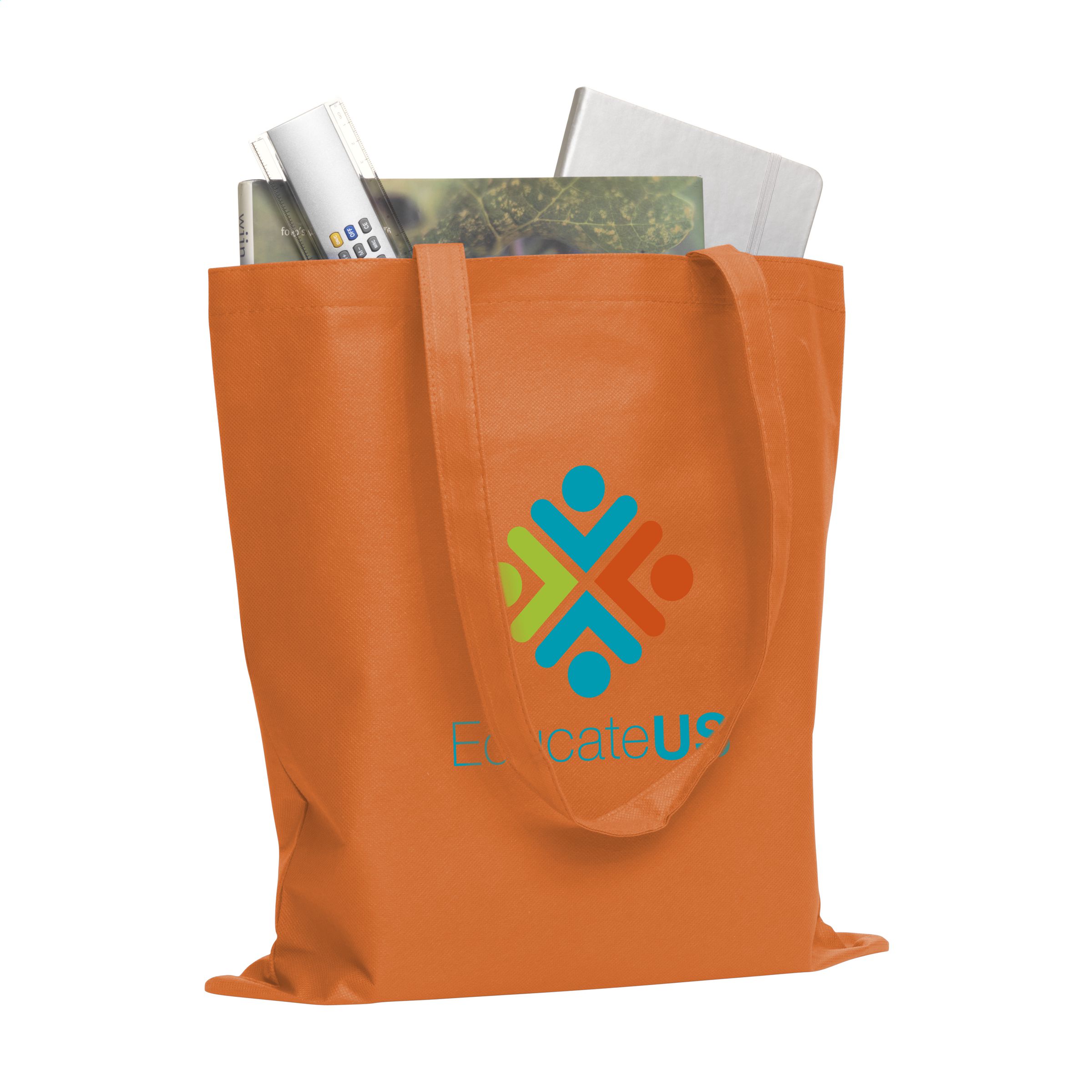 Shopping bag with long handles, made of an ultra light, non-woven material (80 g/m²).