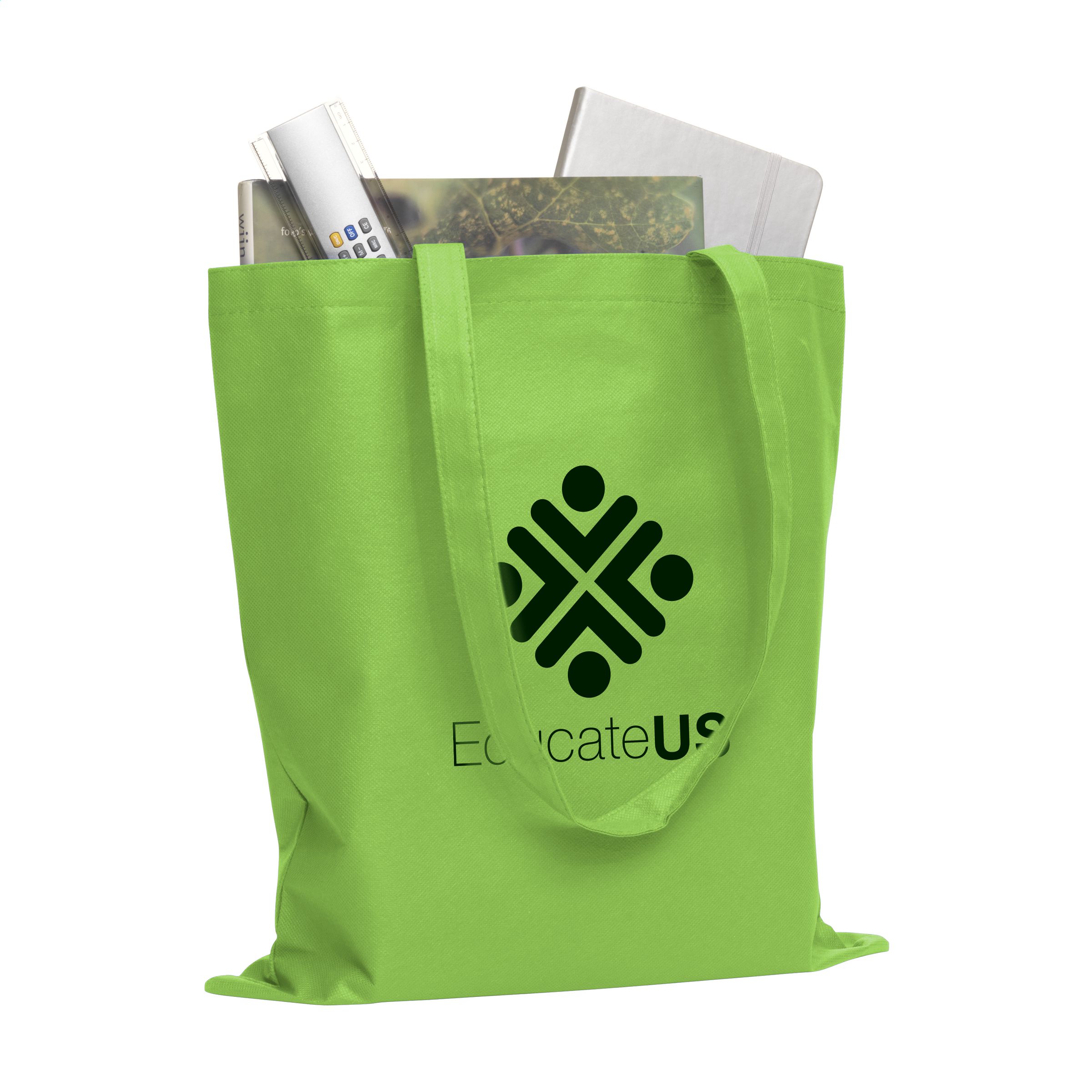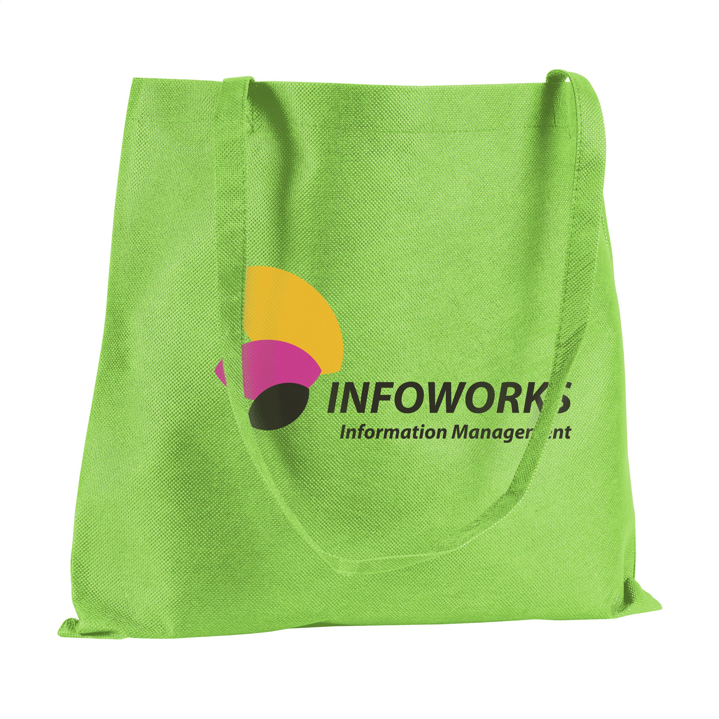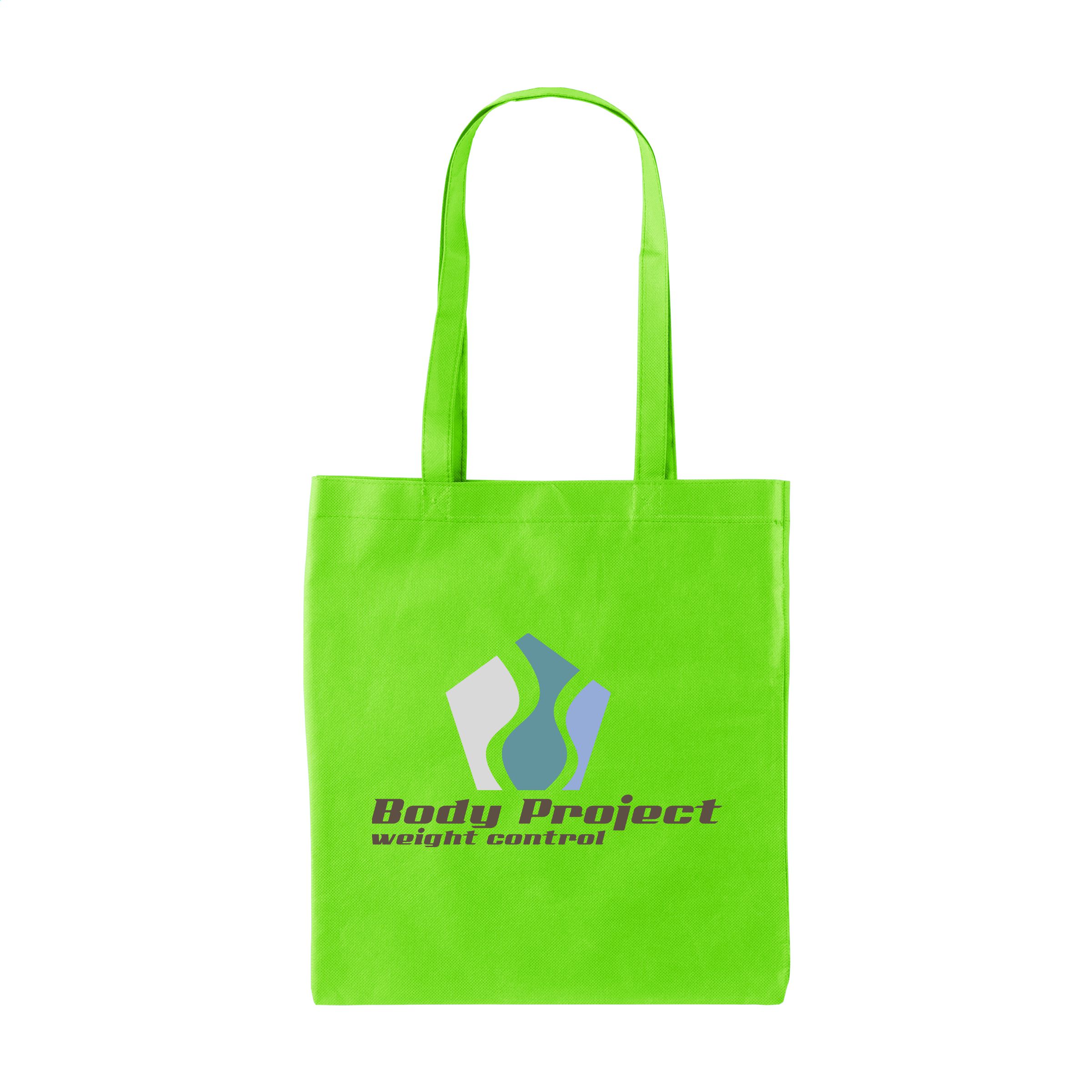 Shopping bag with long handles, made of an ultra light, non-woven material (80 g/m²).