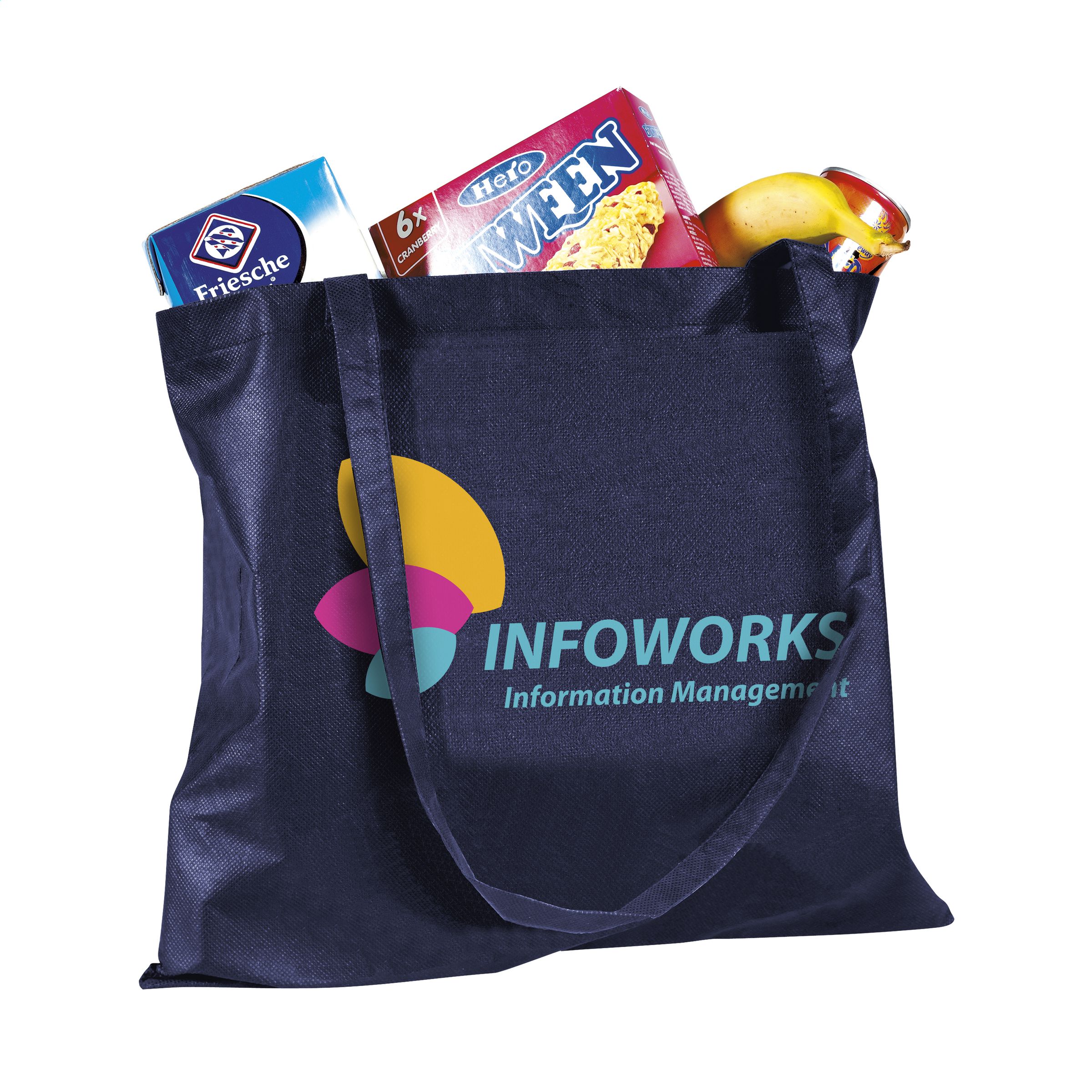 Shopping bag with long handles, made of an ultra light, non-woven material (80 g/m²).