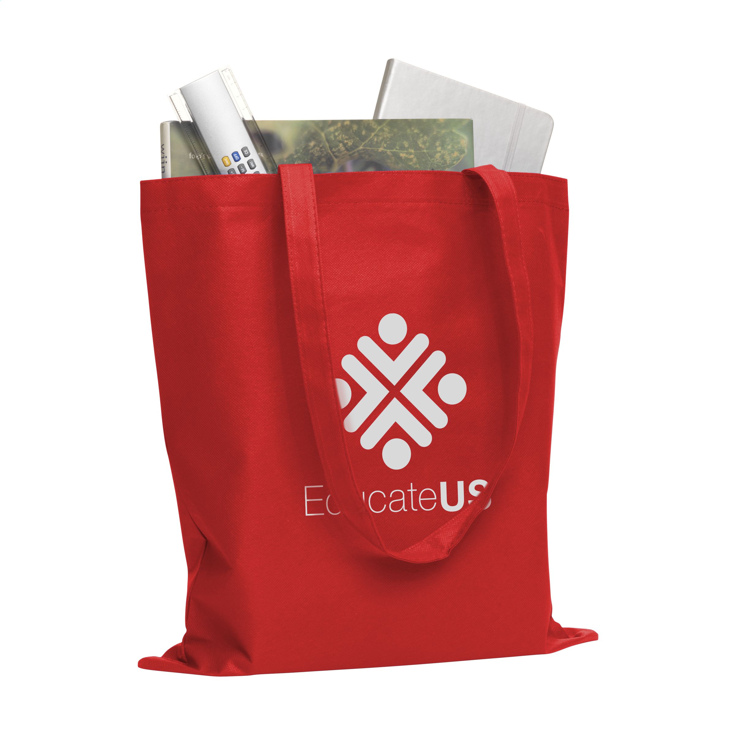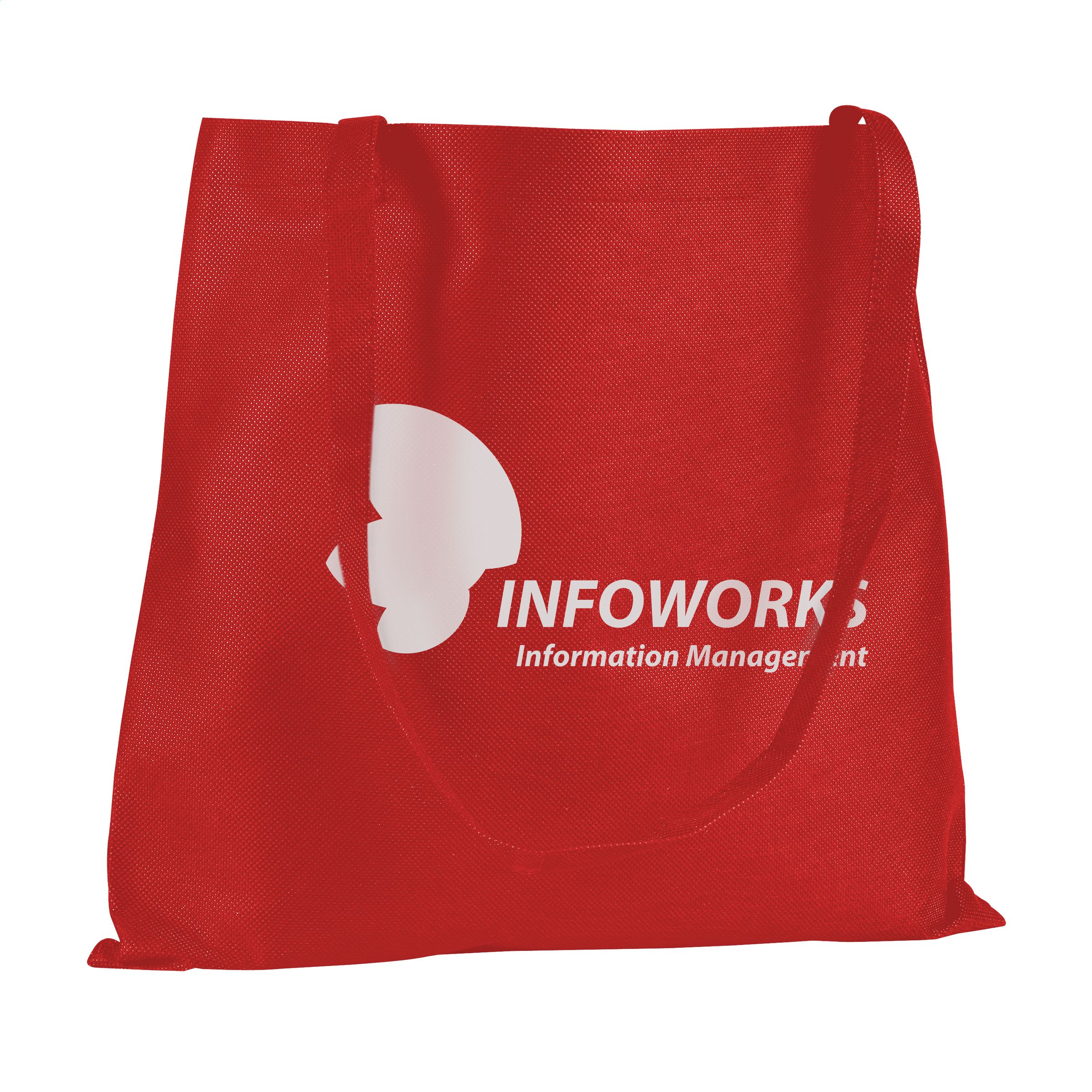 Shopping bag with long handles, made of an ultra light, non-woven material (80 g/m²).