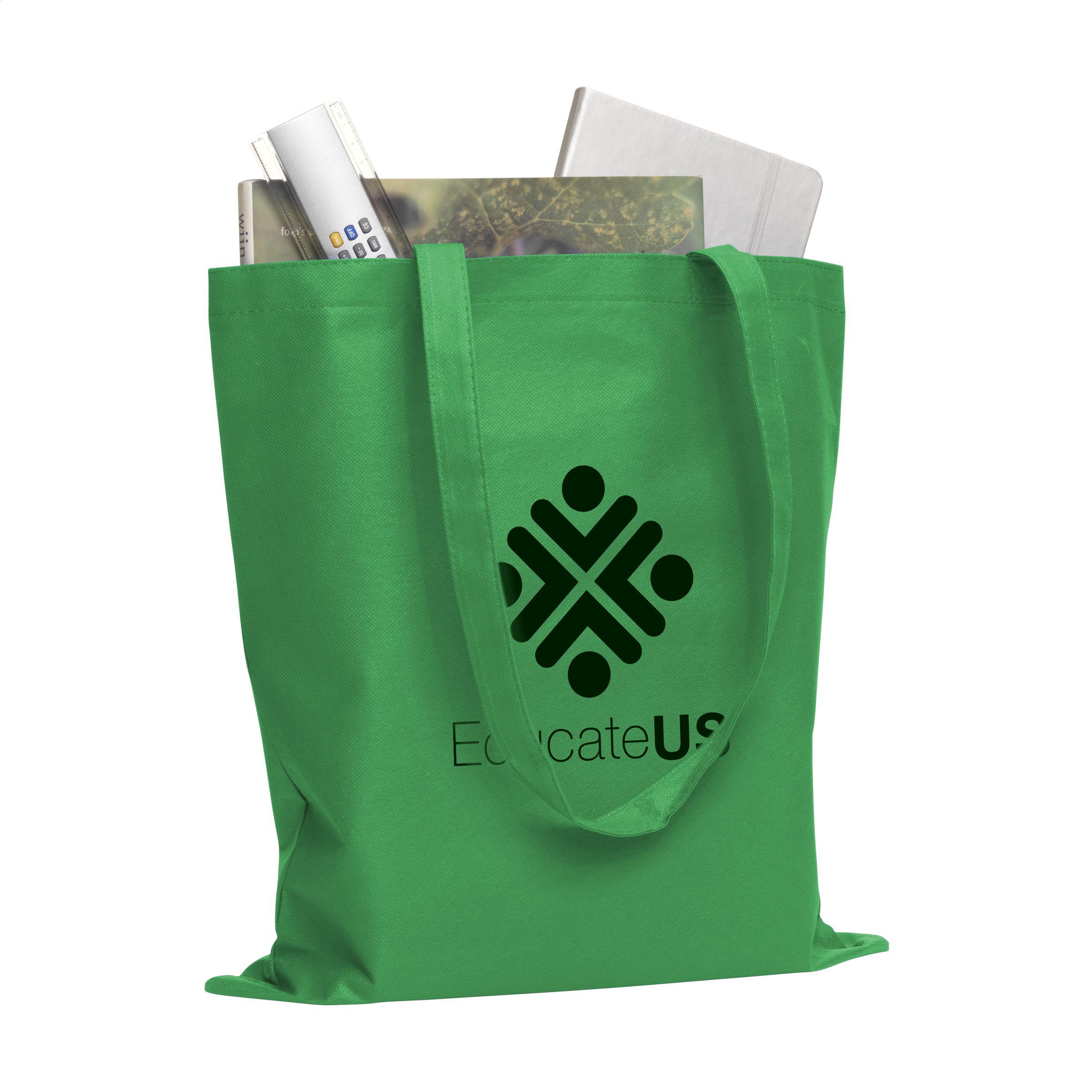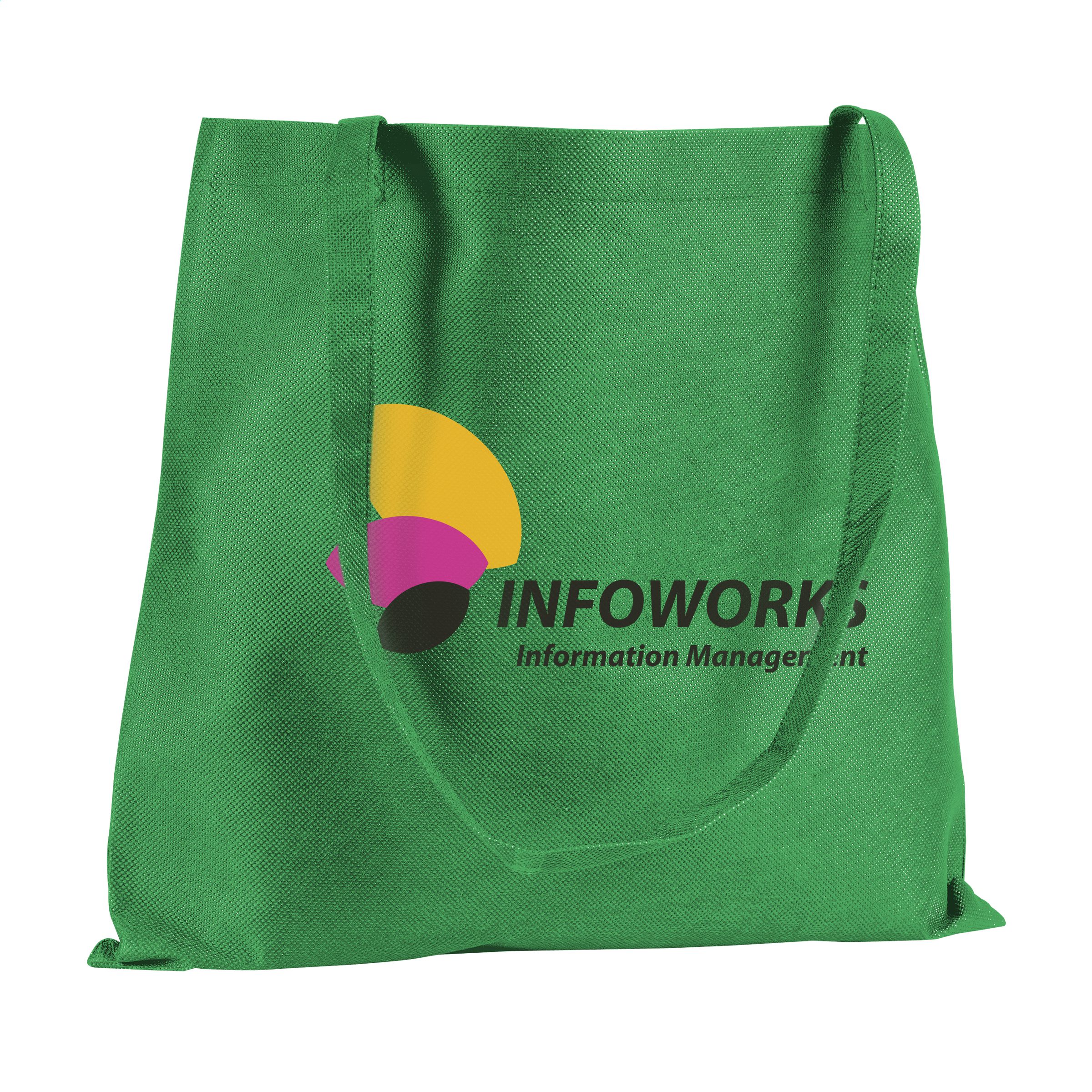 Shopping bag with long handles, made of an ultra light, non-woven material (80 g/m²).