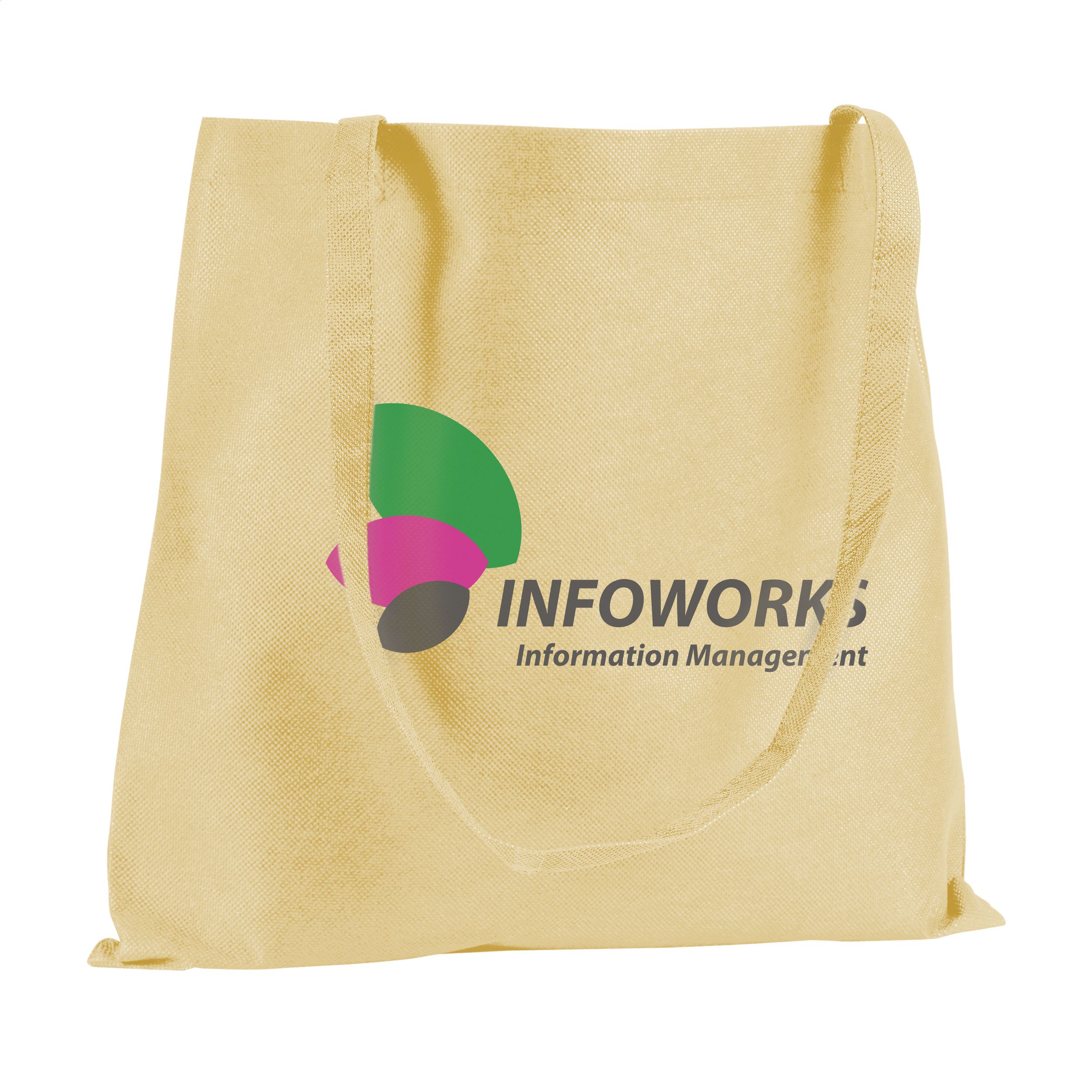 Shopping bag with long handles, made of an ultra light, non-woven material (80 g/m²).