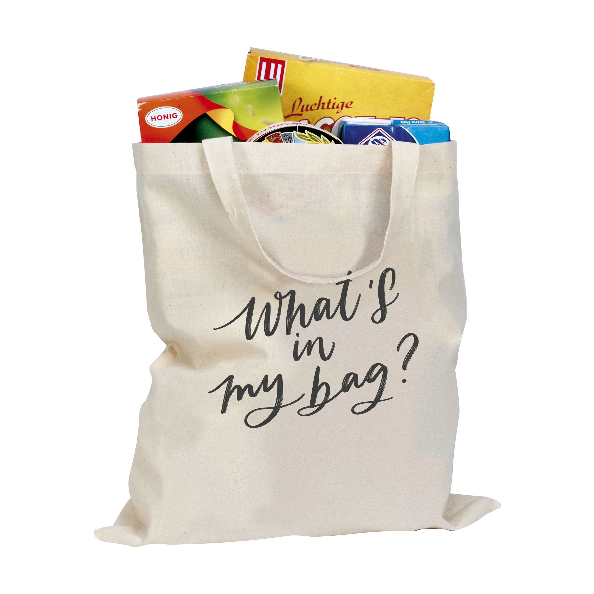 Popular shopping bag made of 100% woven cotton (135g/m²). A high quality, durable bag.