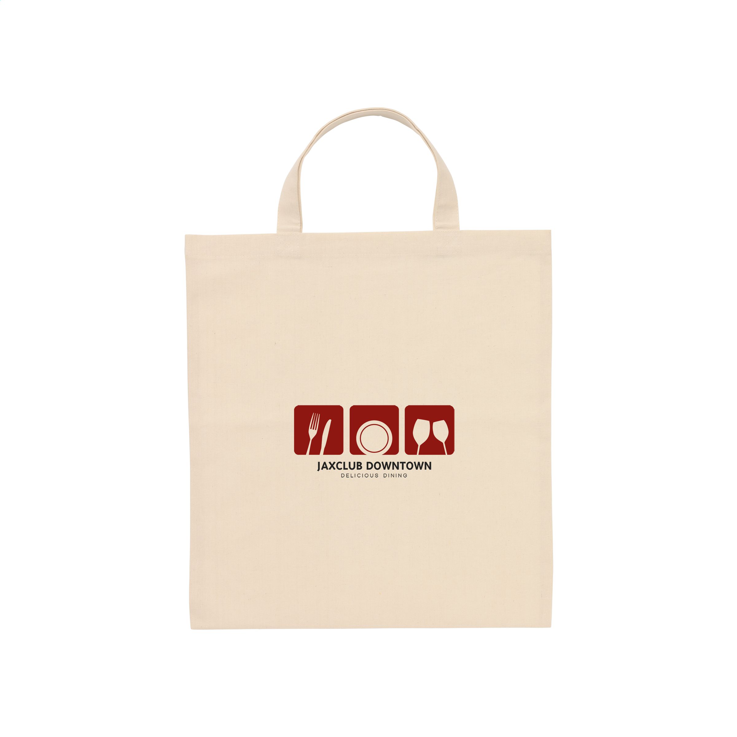 Shopping bag made of sturdy, 100% fastwoven cotton (180 g/m²). With short handles. A high quality, durable bag.