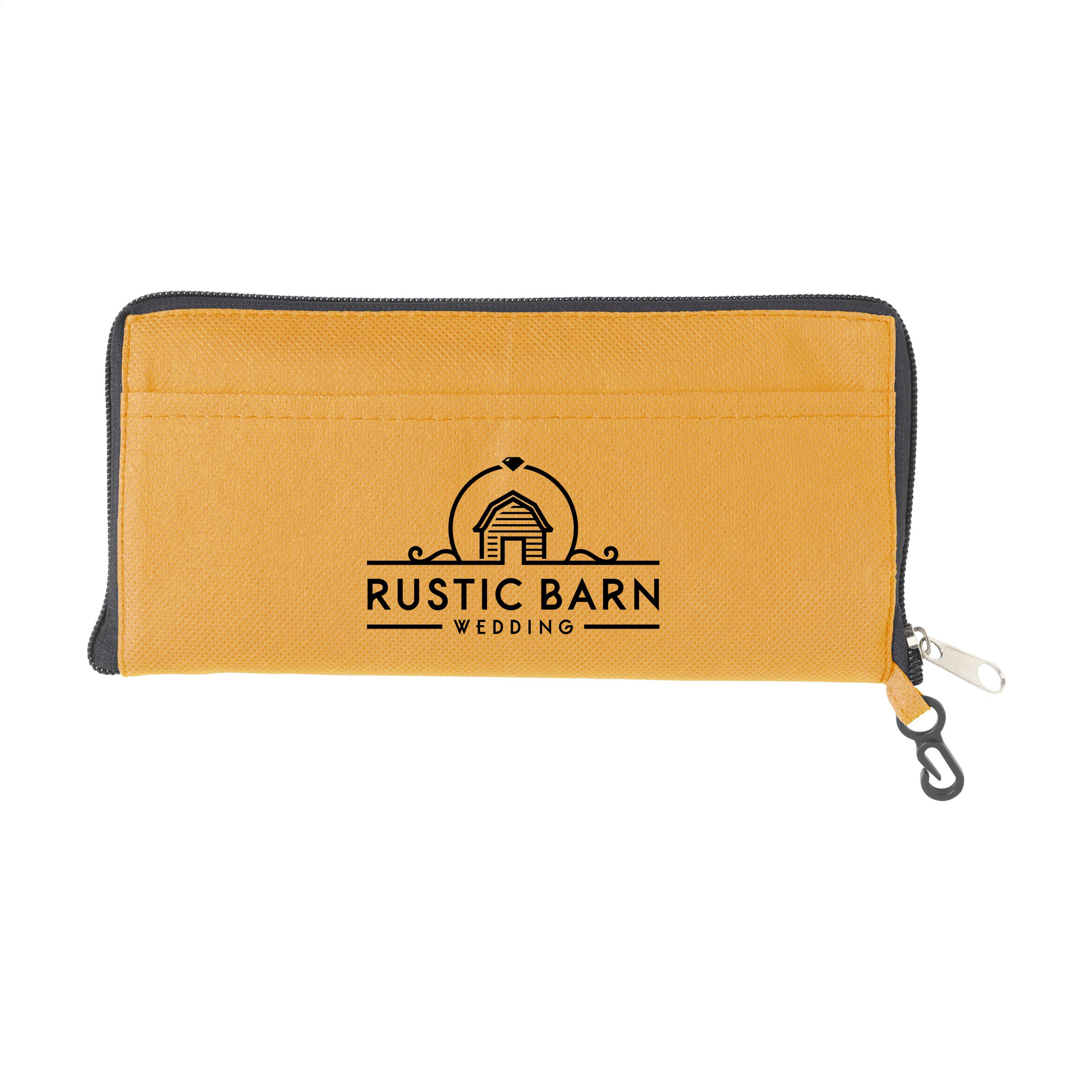 Foldable, non-woven (80g/m²) shopping bag with compartment. In a compact pouch with zip and carabiner. Meas. unfolded 37 x 40 cm.