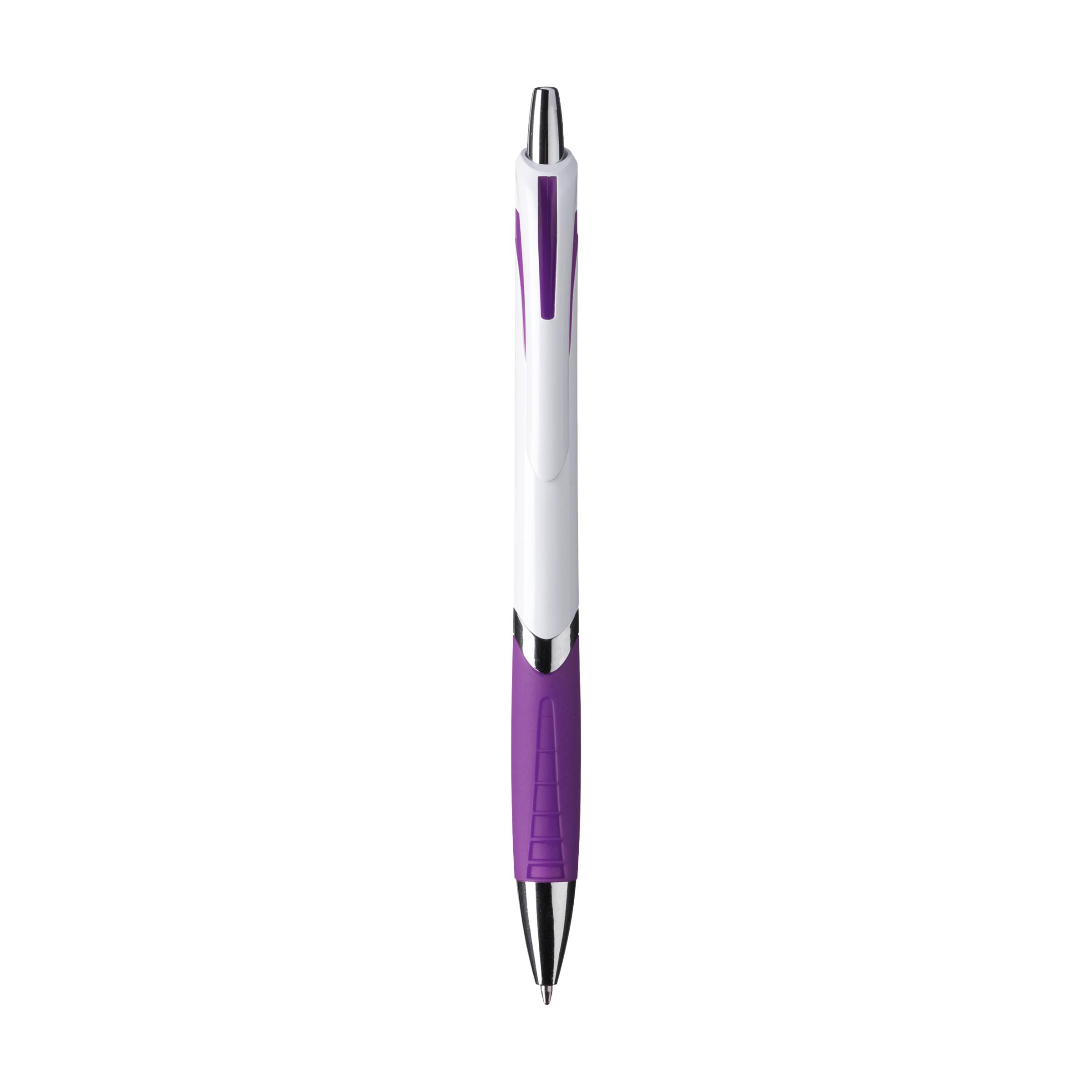 Blue ink ballpoint pen with a rubber grip, modern clip with stylish colour accent.