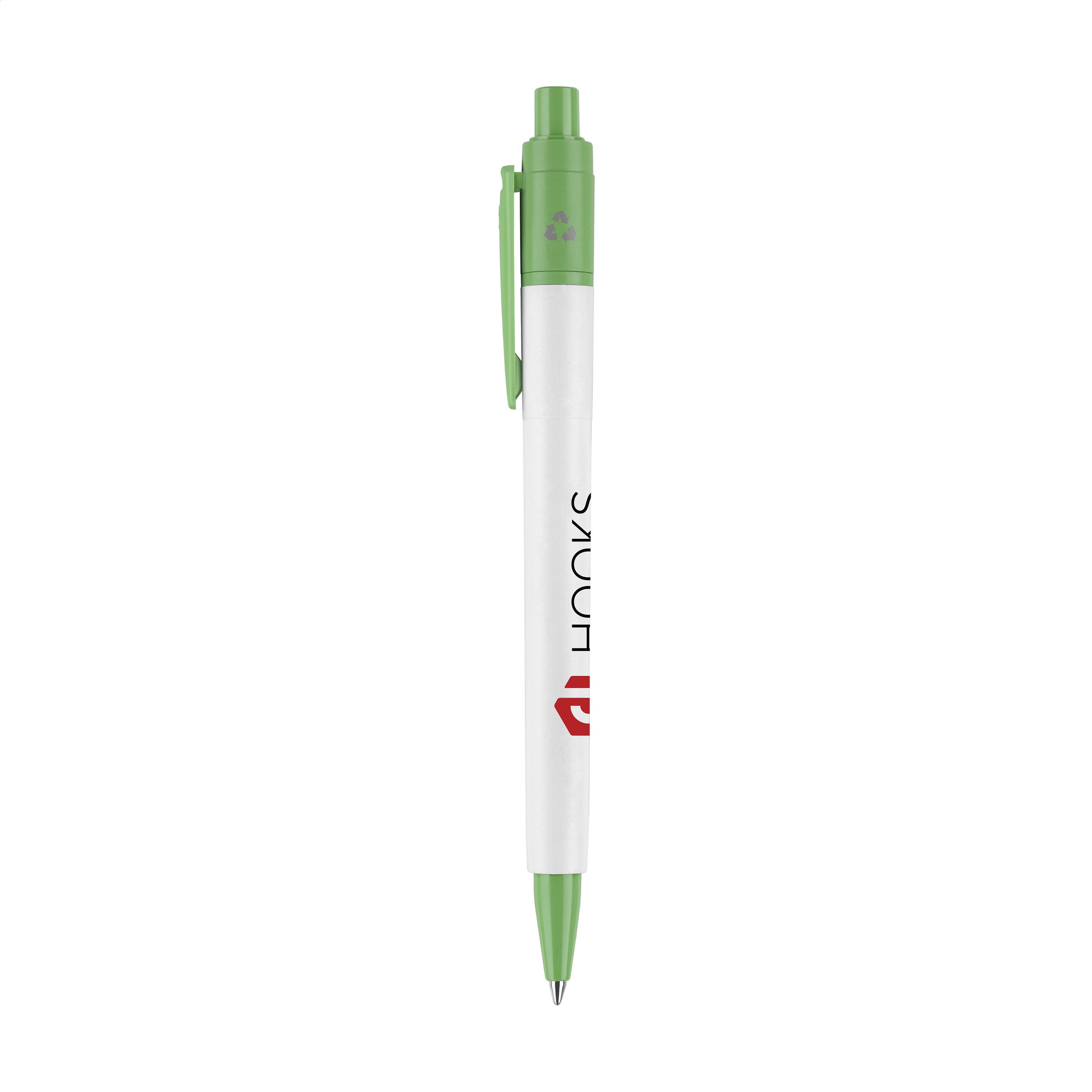Eco-friendly, blue ink ballpoint pen by Stilolinea®. Made of 100% recycled ABS plastic from post-consumption of electronic and/or discarded devices. With a standard imprint of the recycling symbol beside the clip. A responsible choice. Made in Italy.