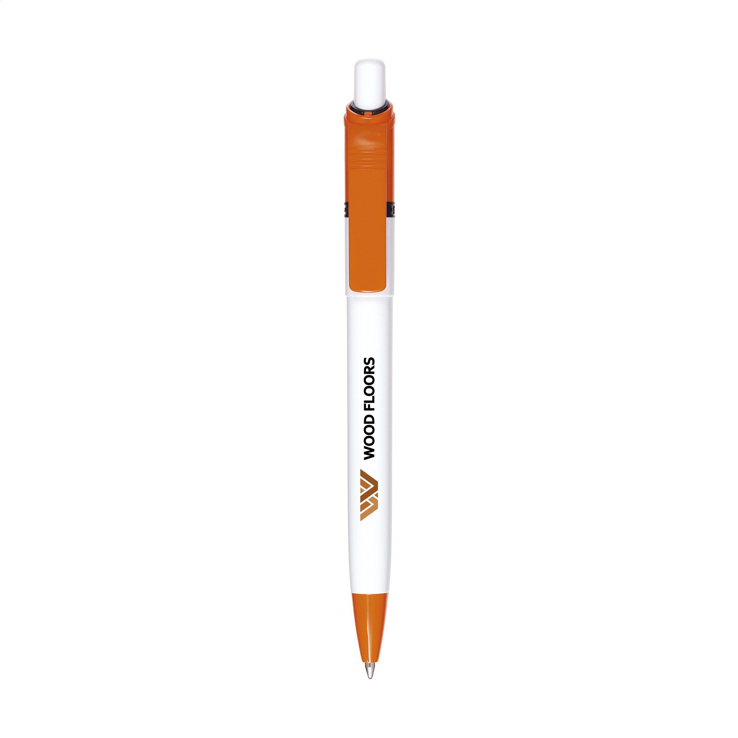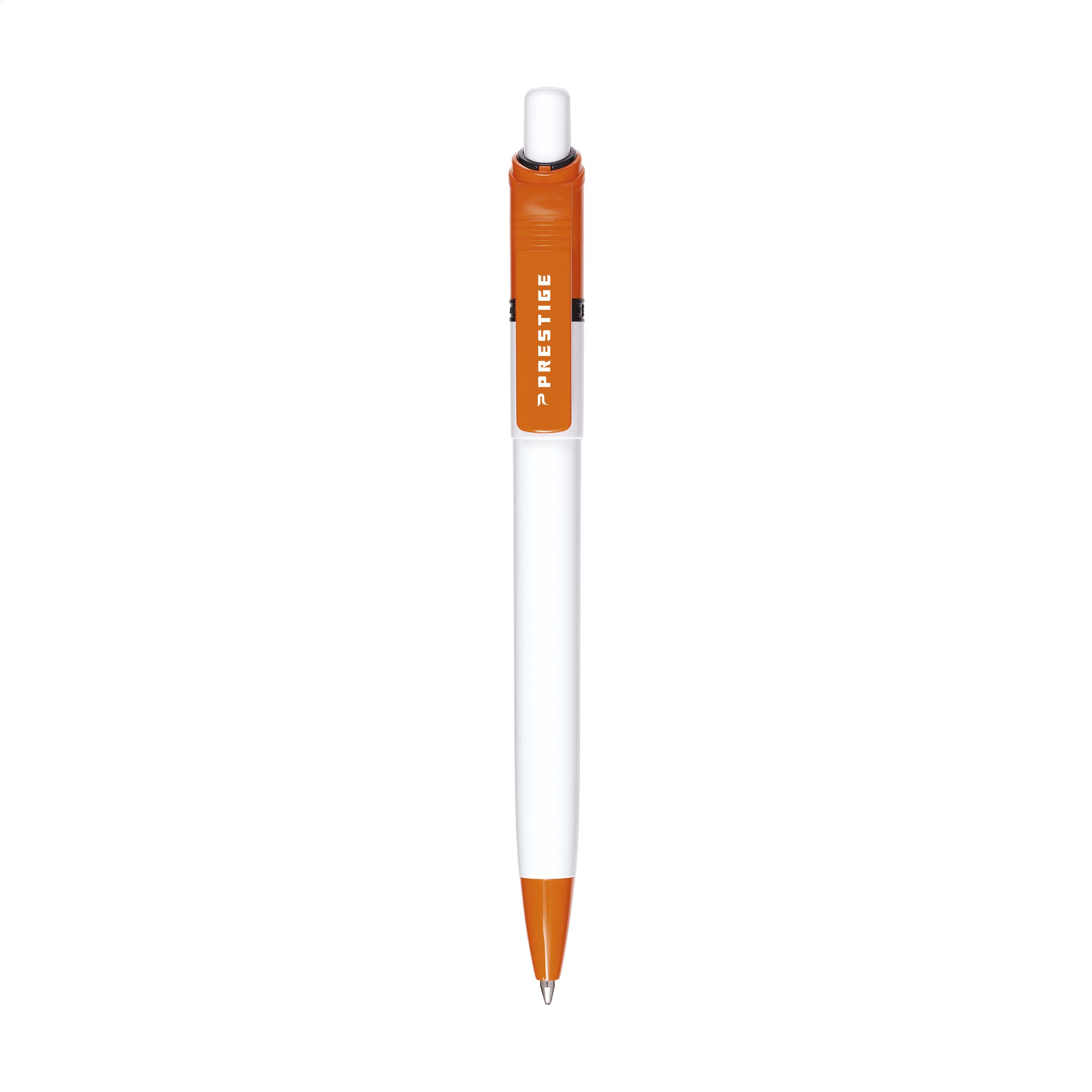 Blue ink ballpoint pen with coloured clip and point. Made in Italy.