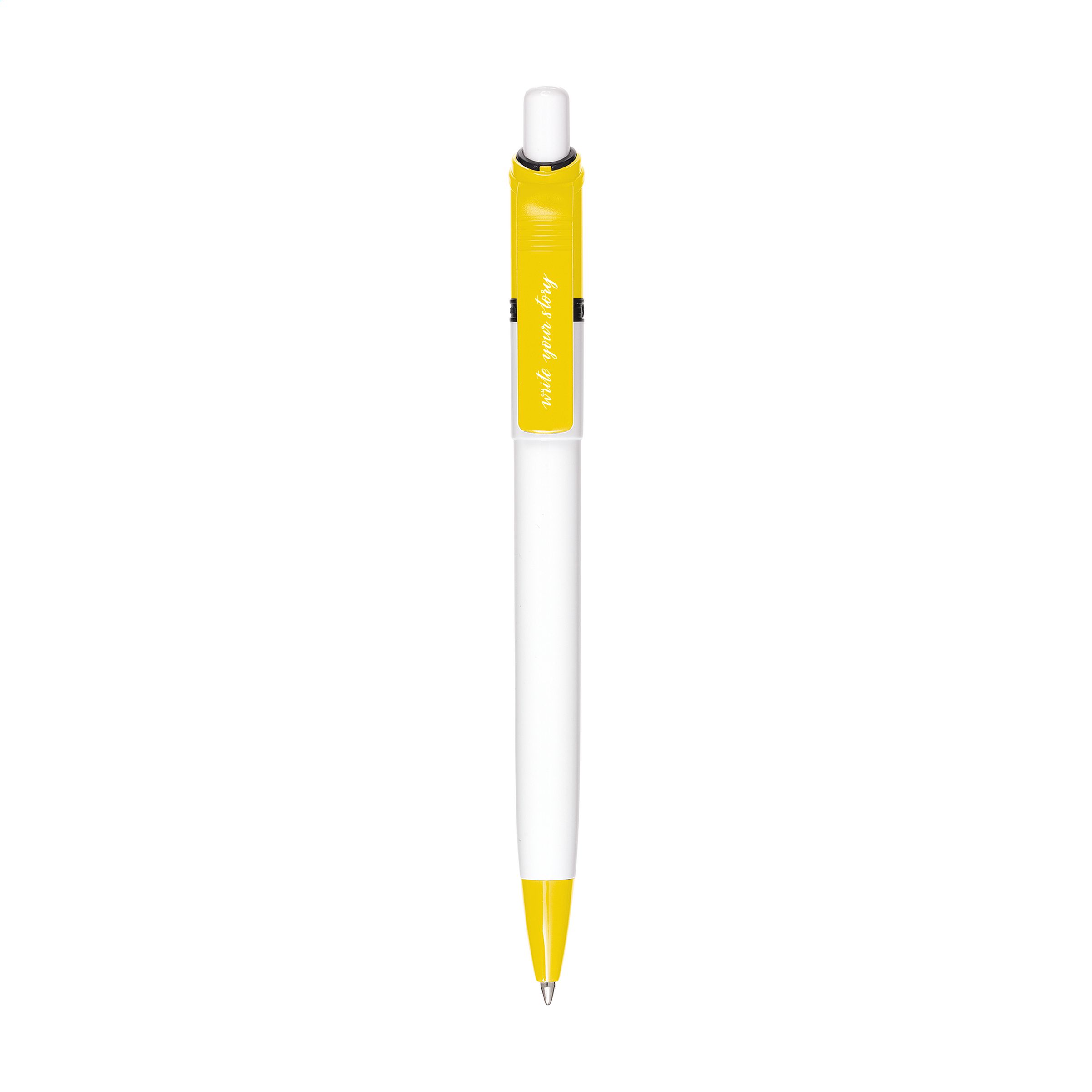 Blue ink ballpoint pen with coloured clip and point. Made in Italy.