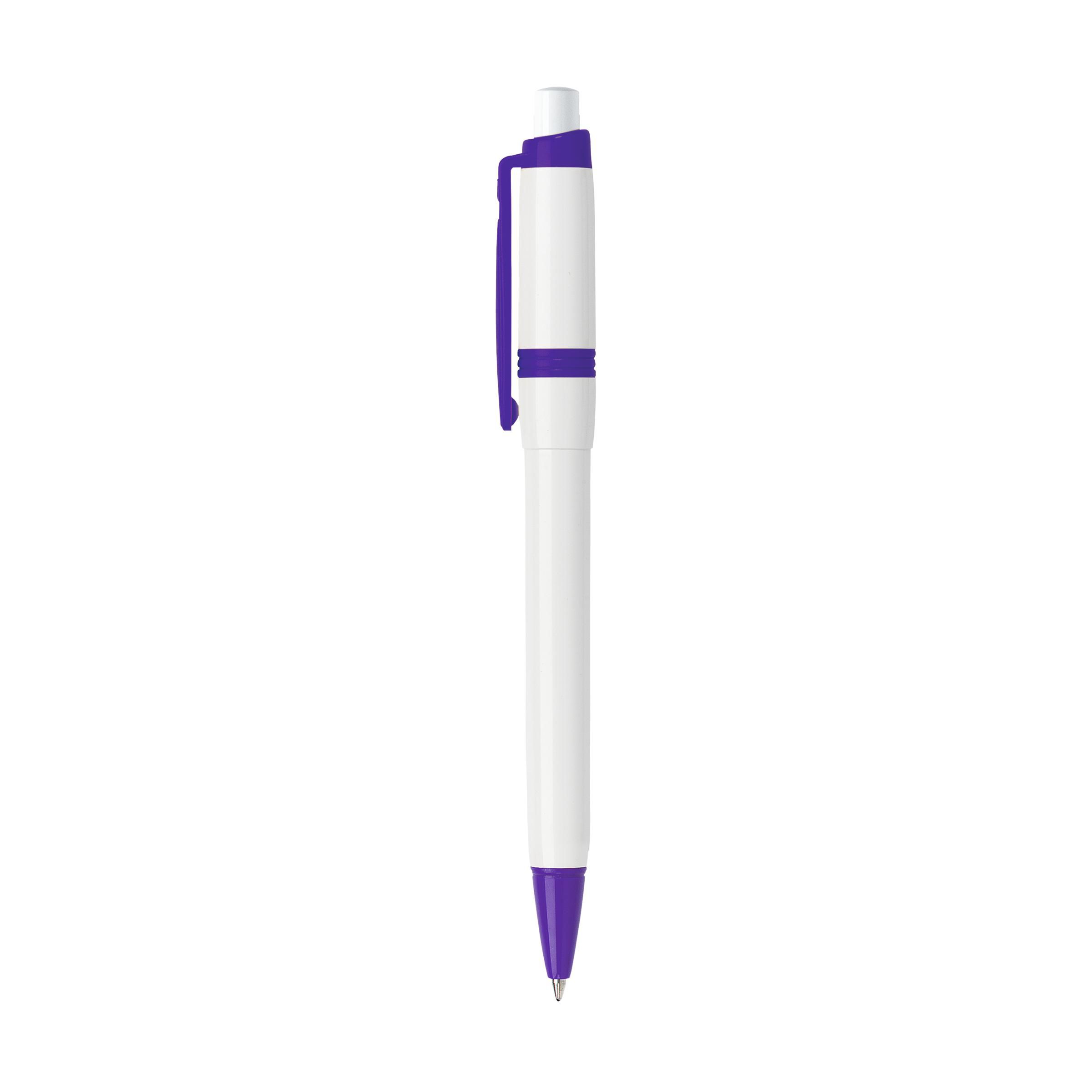 Blue ink ballpoint pen with coloured clip and point. Made in Italy.