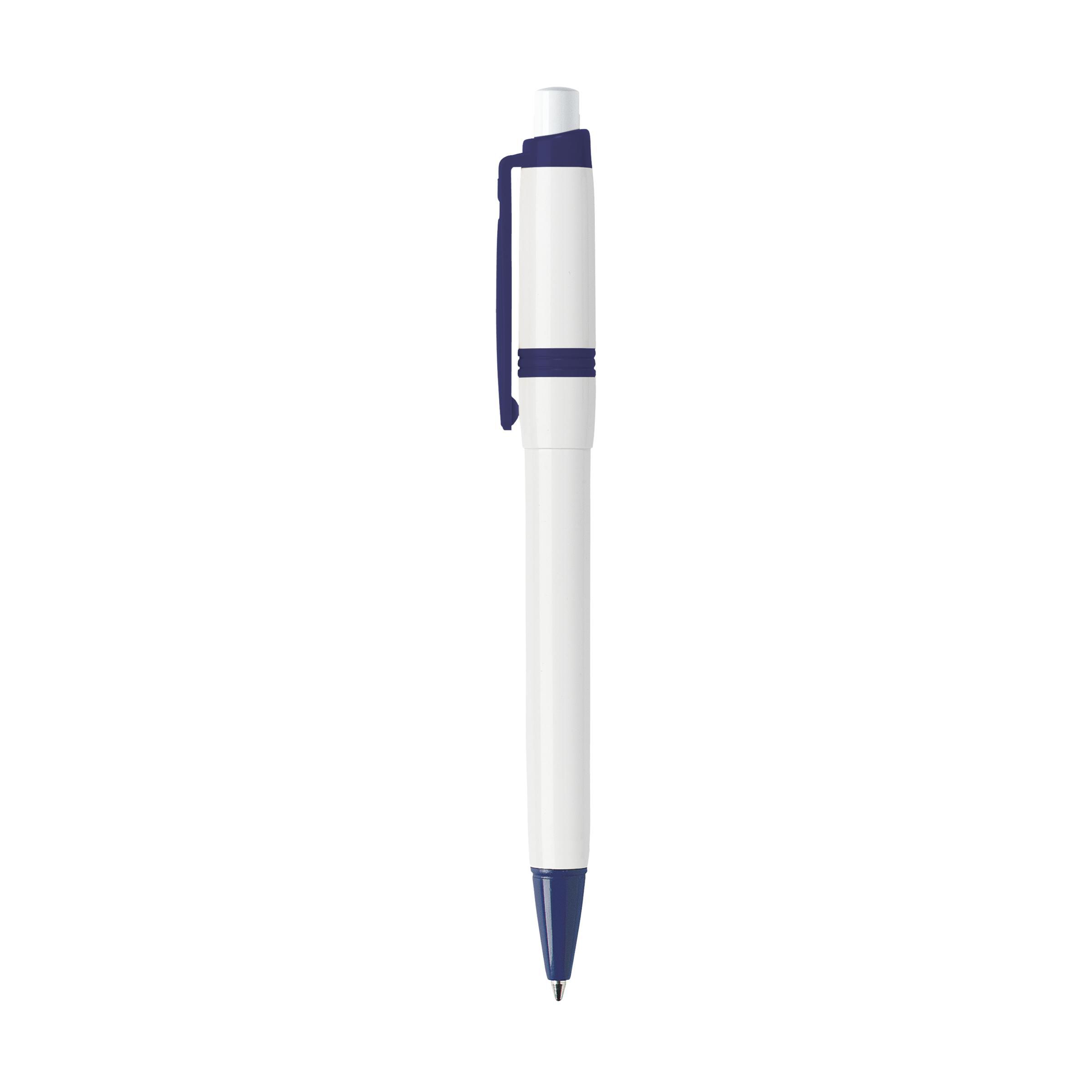 Blue ink ballpoint pen with coloured clip and point. Made in Italy.