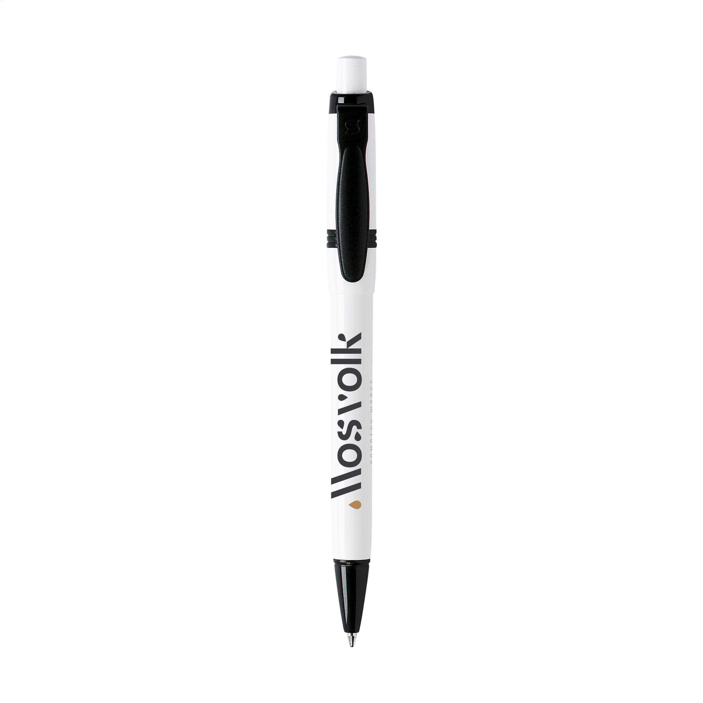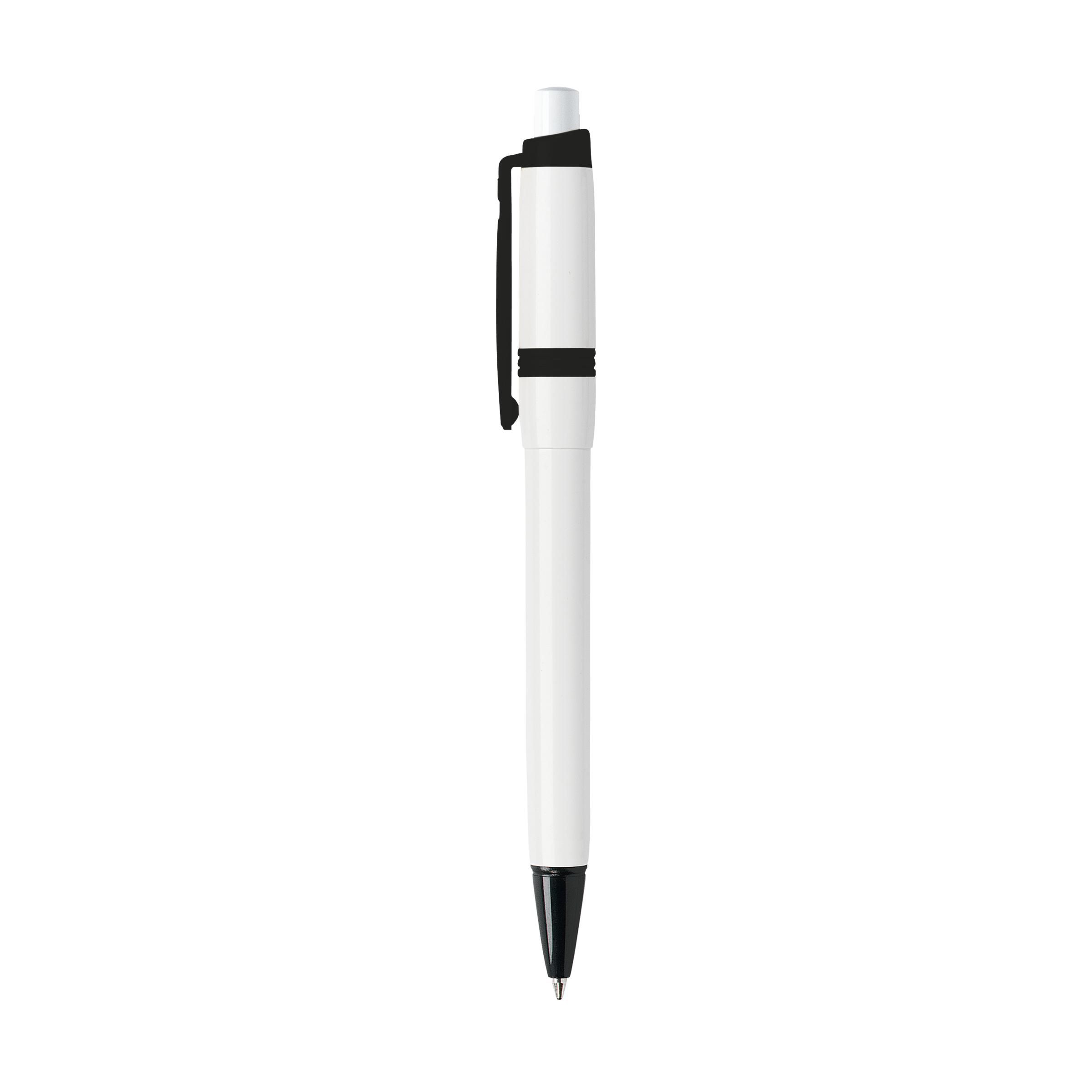 Blue ink ballpoint pen with coloured clip and point. Made in Italy.