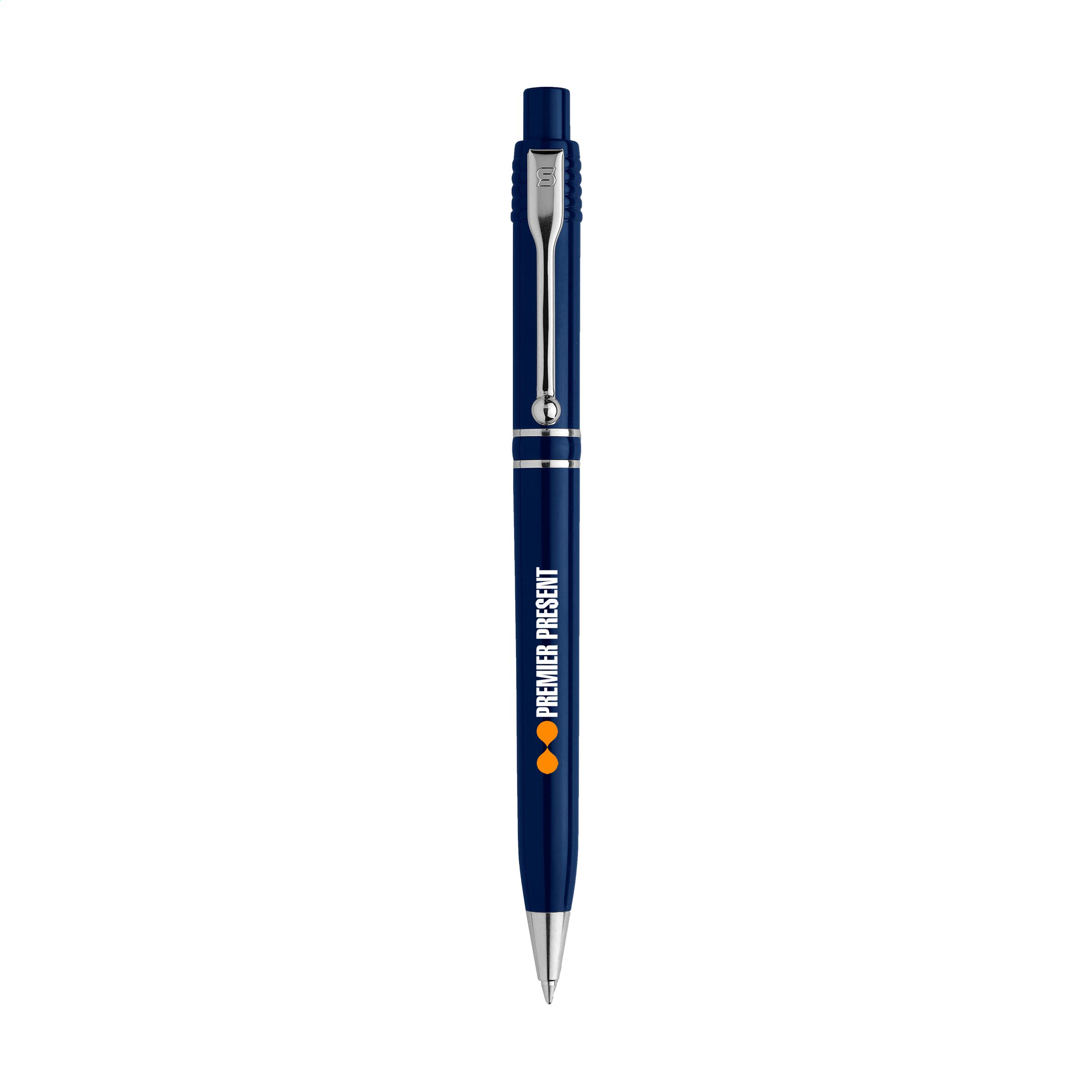 Blue ink Stilolinea ballpoint pen. With metal tip, clip and trims. Made in Italy.