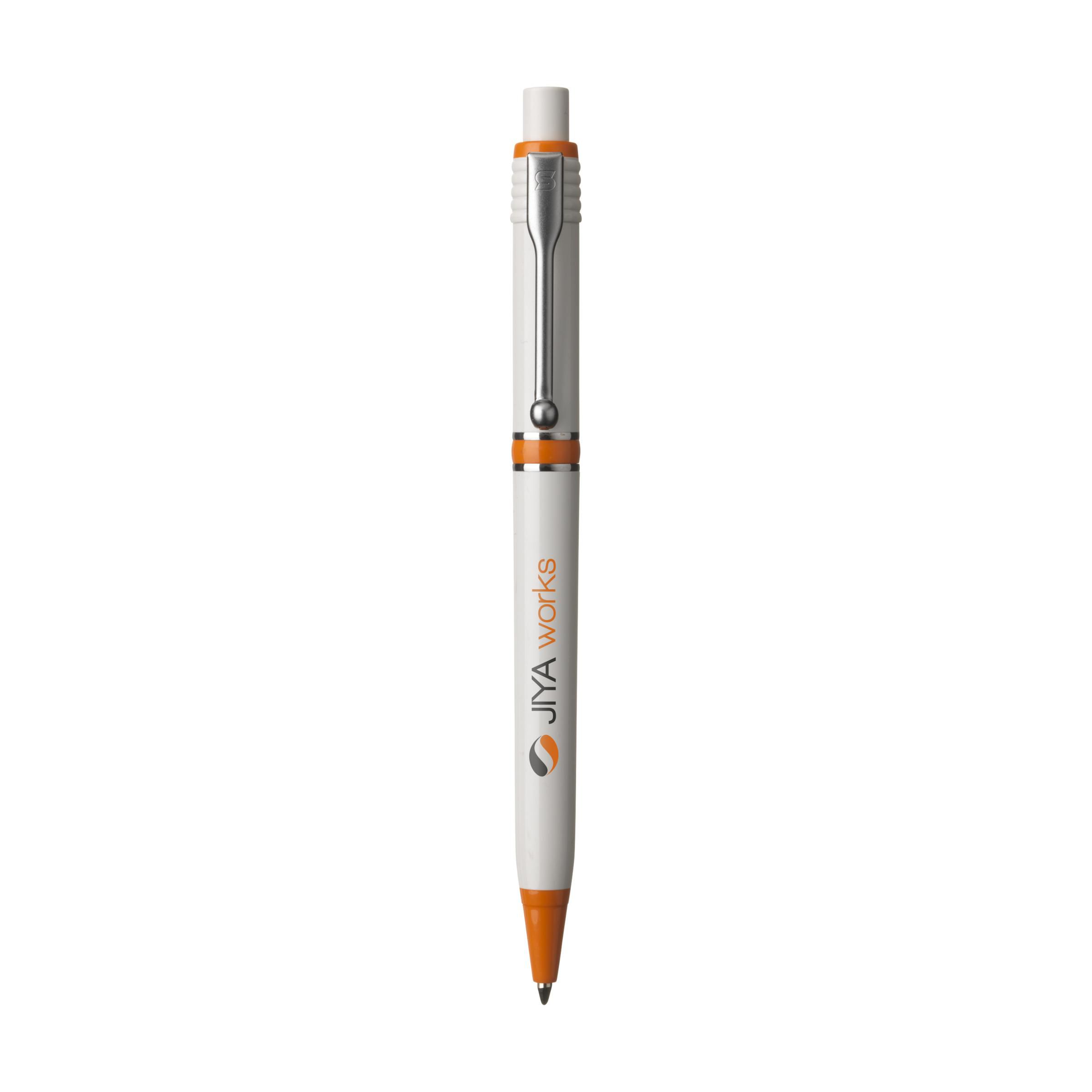 Blue ink Stilolinea ballpoint pen with coloured tip, metal clip and trims. Made in Italy.