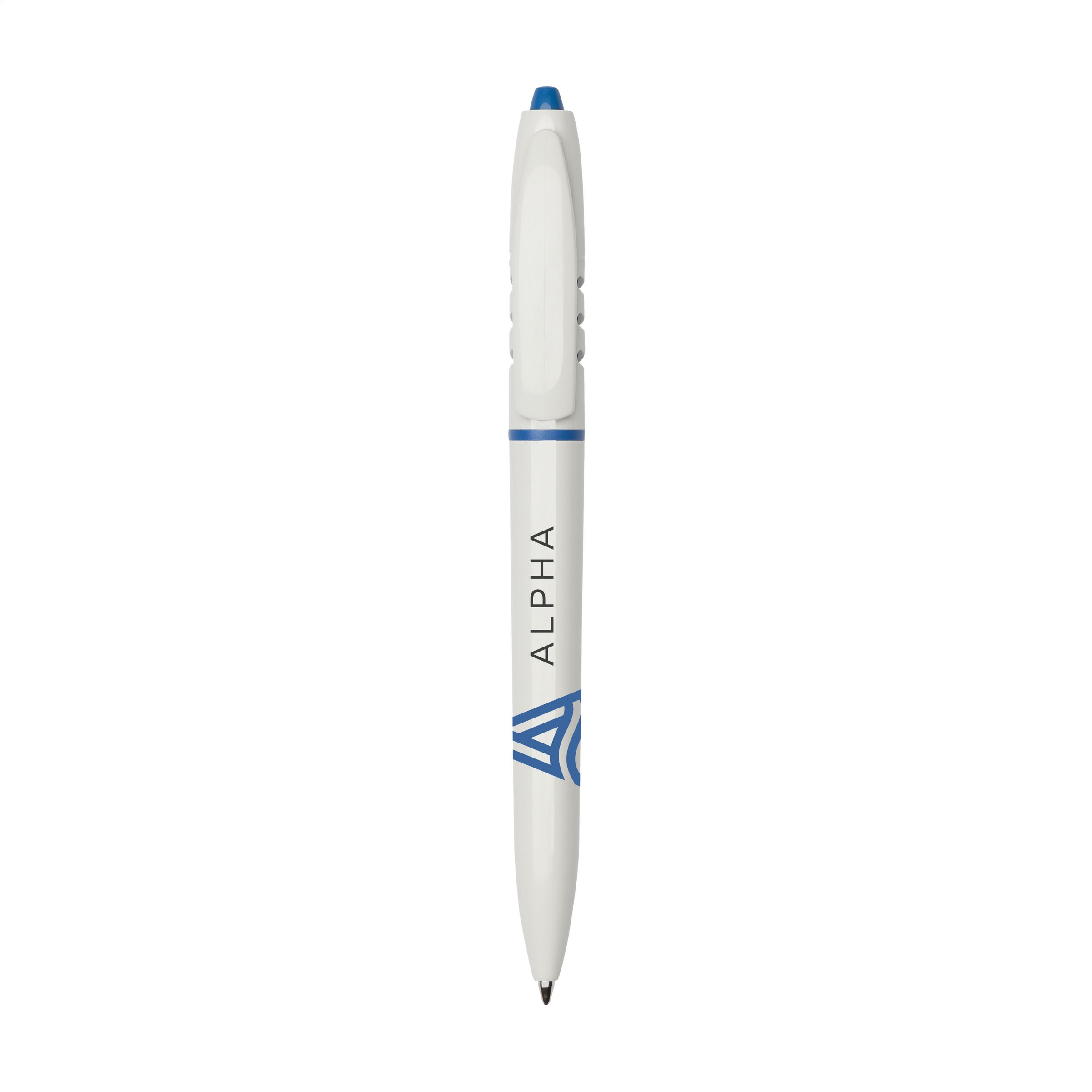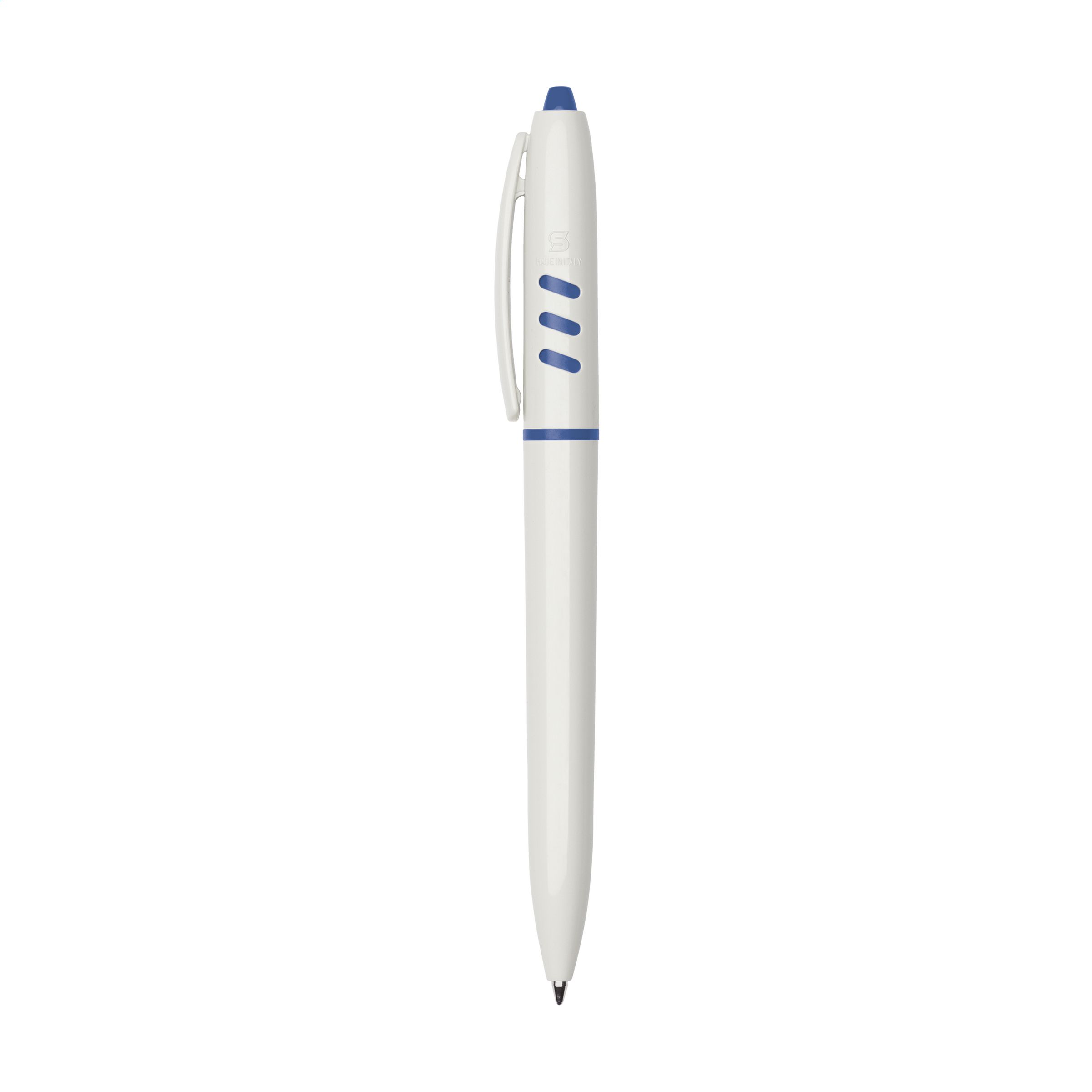 Blue ink ballpoint pen with clip extra wide and colour accent in holder. Made in Italy.