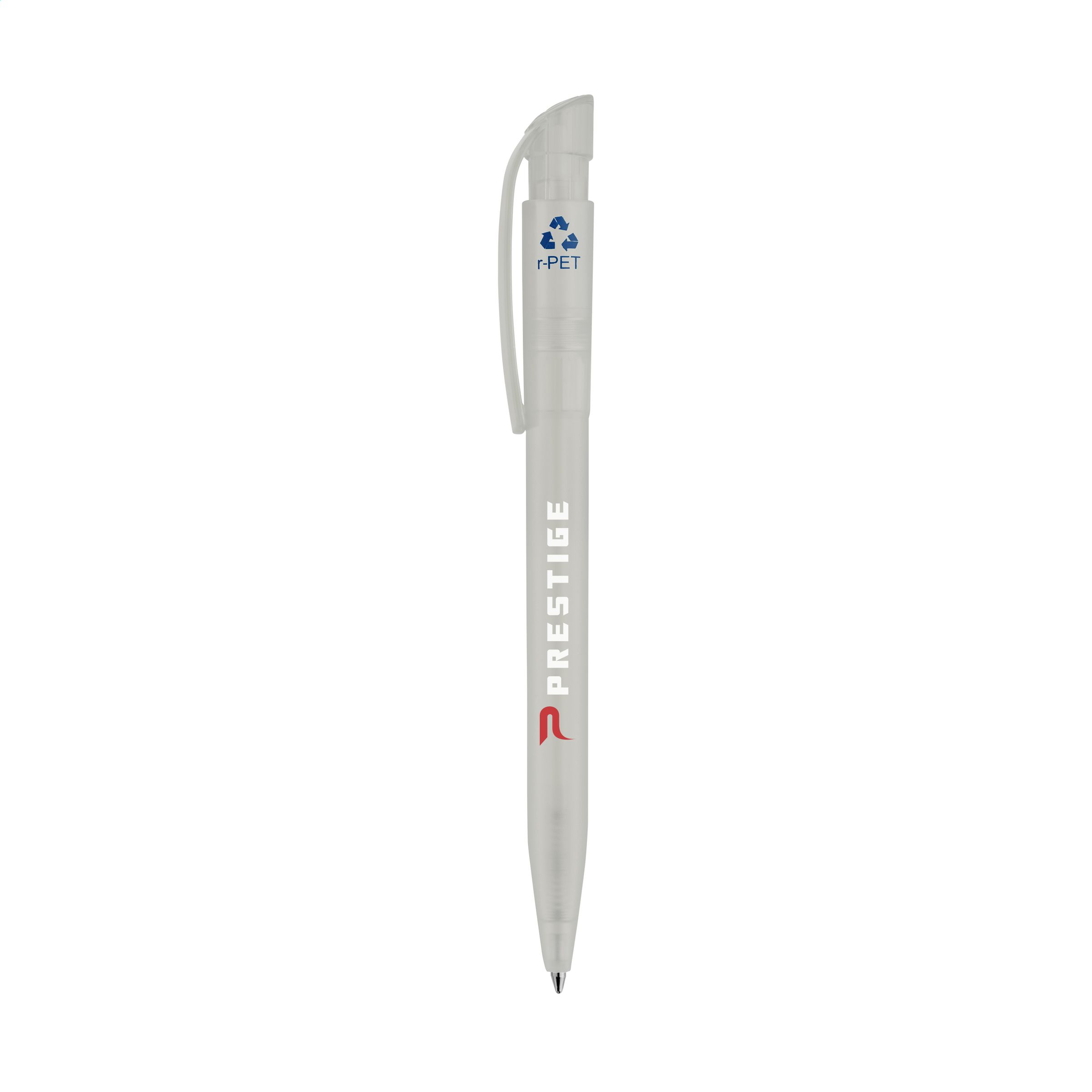 Environmentally friendly ballpoint pen with blue ink by Stilolinea®. The RPET barrel and clip/push-button are made from recycled PET bottles. The generous clip is ideal for printing and stands out immediately. Made in Italy.
