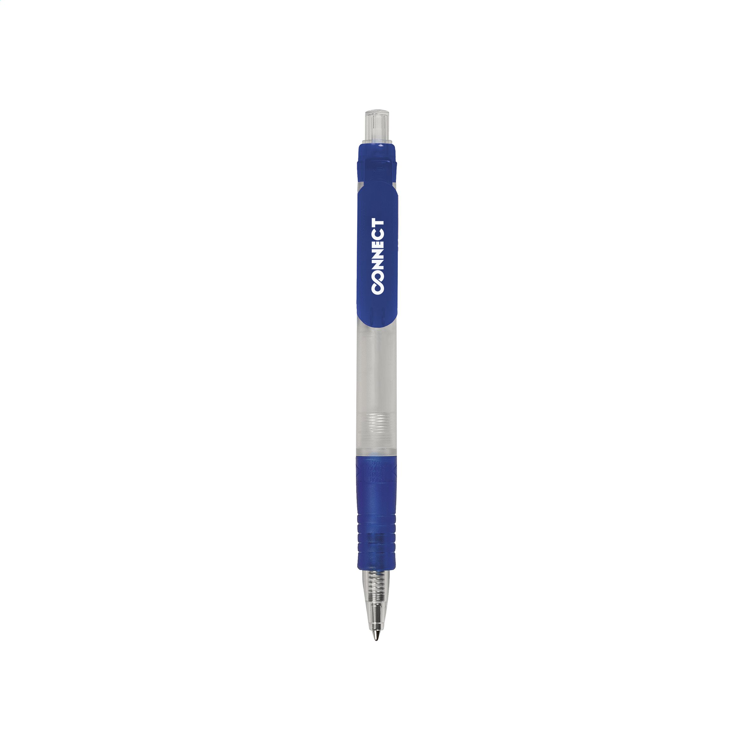 Blue ink ballpoint pen, manufactured from natural materials and 80% biodegradable/compostable. With translucent barrel and easy grip. (EN13432:2000-12). Made in Italy.