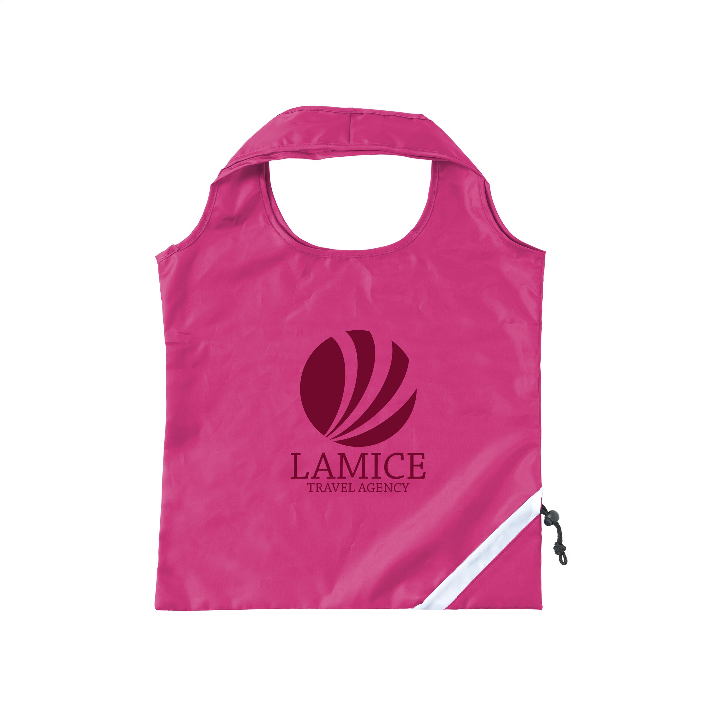 Foldable large shopping bag made from sturdy polyester. In a swift motion from bag to pouch. Meas. unfolded 42 x 38 cm.