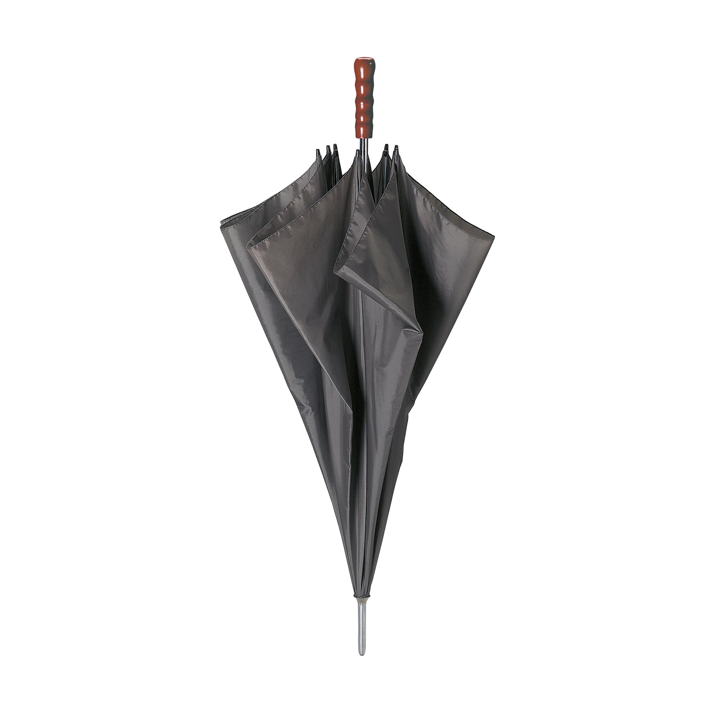 Umbrella with a canopy diameter of 120 cm, 190 T nylon canopy, metal frame and shaft, wooden handle and velcro fastener.