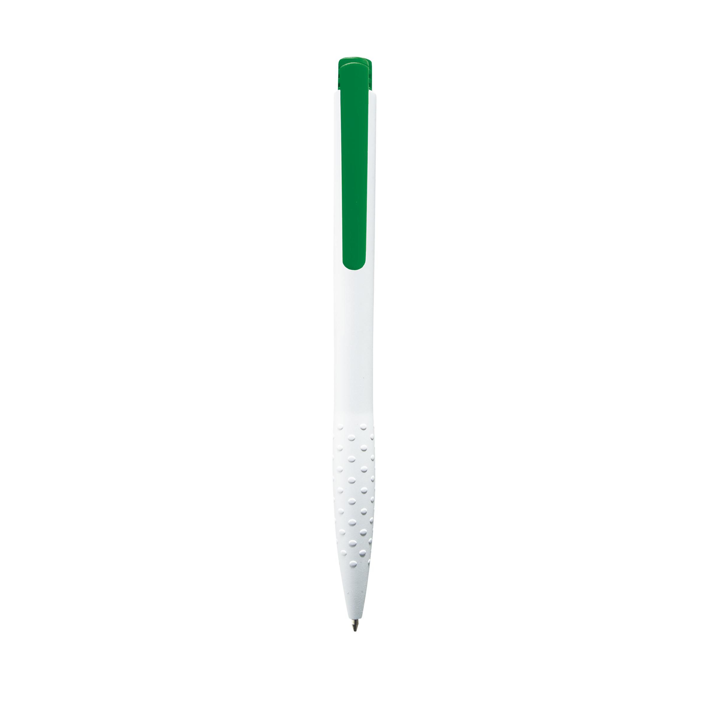Blue or black ink ballpoint pen with textured grip, coloured clip and push button. Please state your preference when ordering.