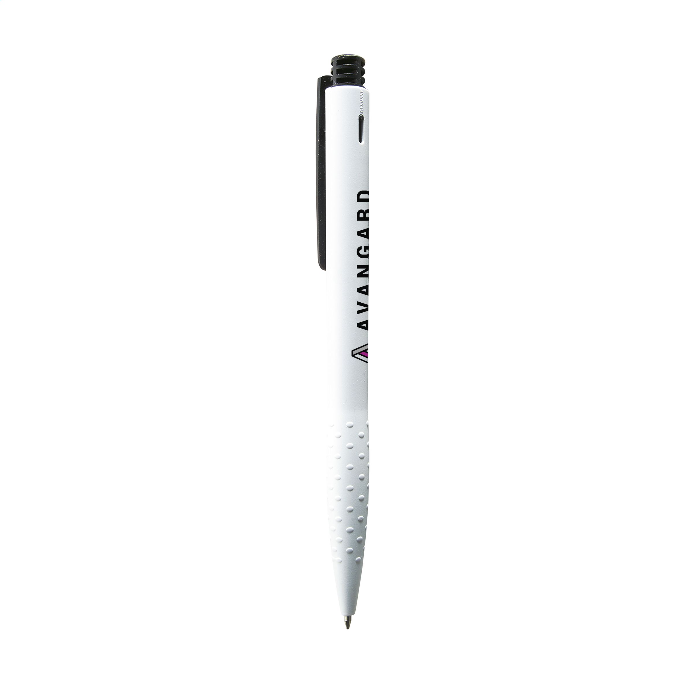 Blue or black ink ballpoint pen with textured grip, coloured clip and push button. Please state your preference when ordering.
