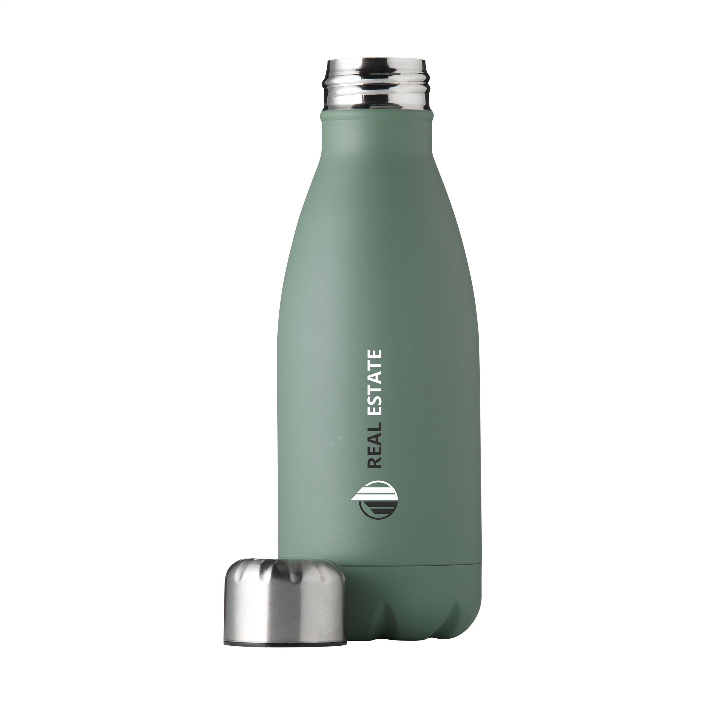 Single-walled stainless steel water bottle with leak-proof screw cap. Capacity 500 ml. Each item is individually boxed.