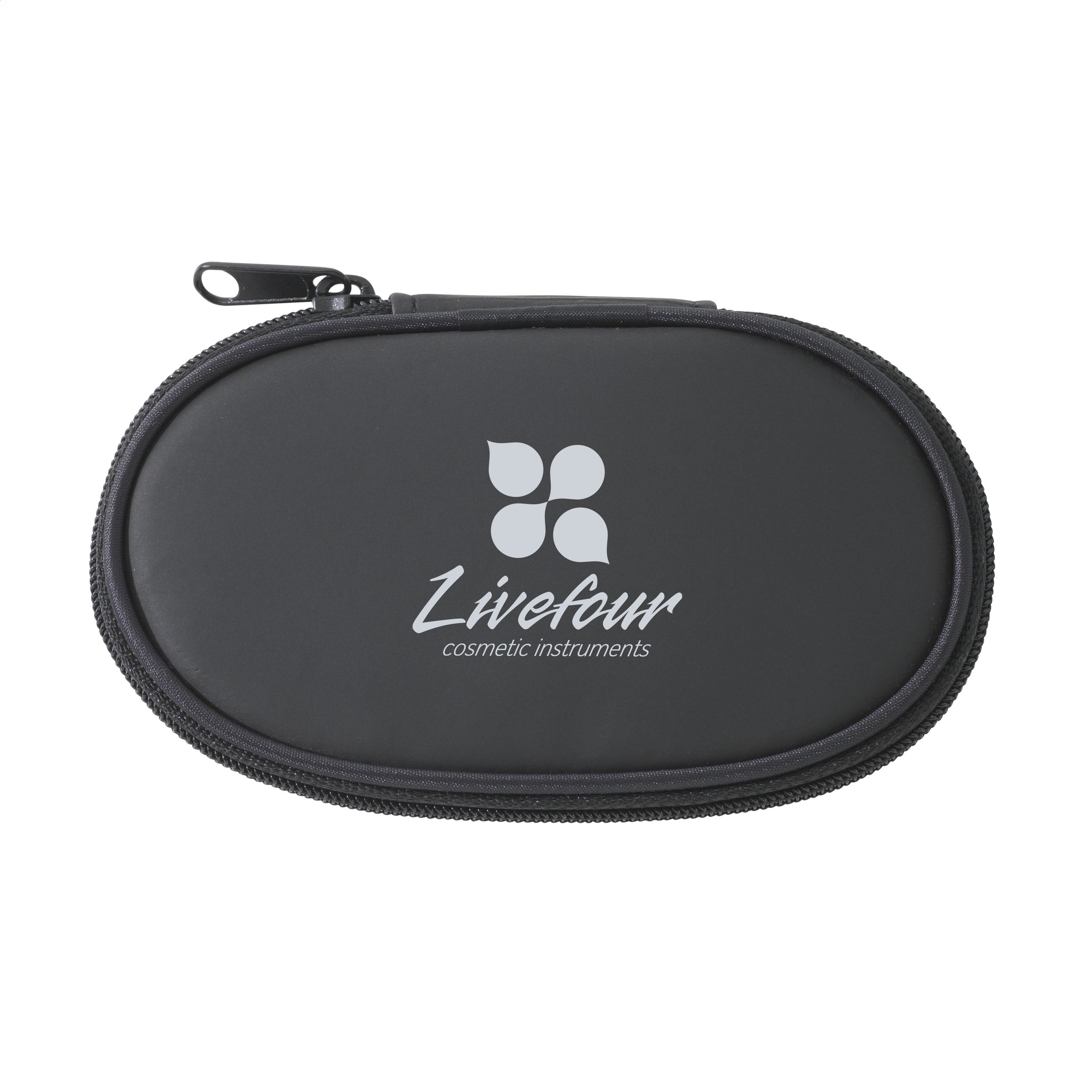 Sewing/manicure set with scissors, nail clippers and tweezers. In 600D nylon case.