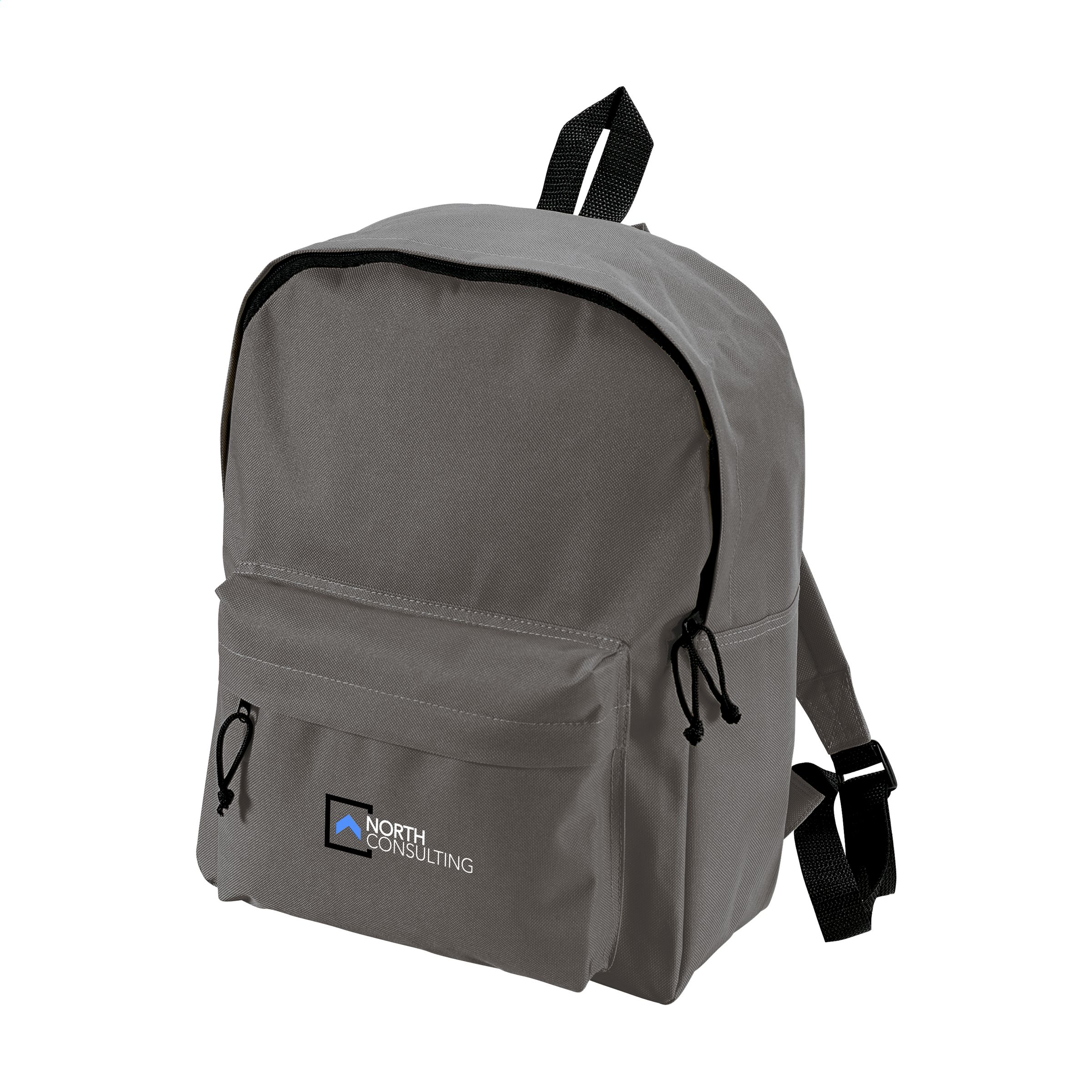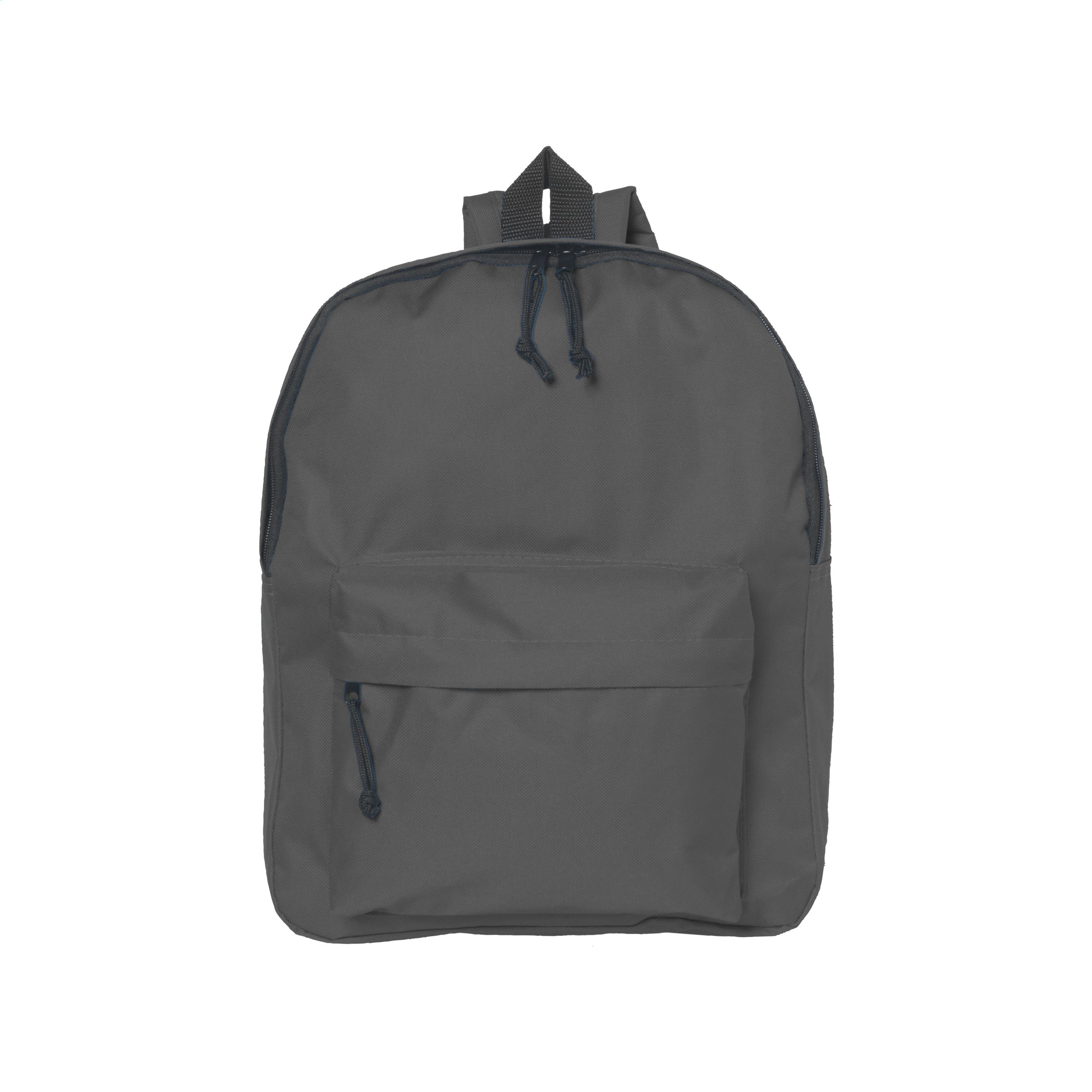 Backpack with large front pocket and adjustable, padded shoulder straps.