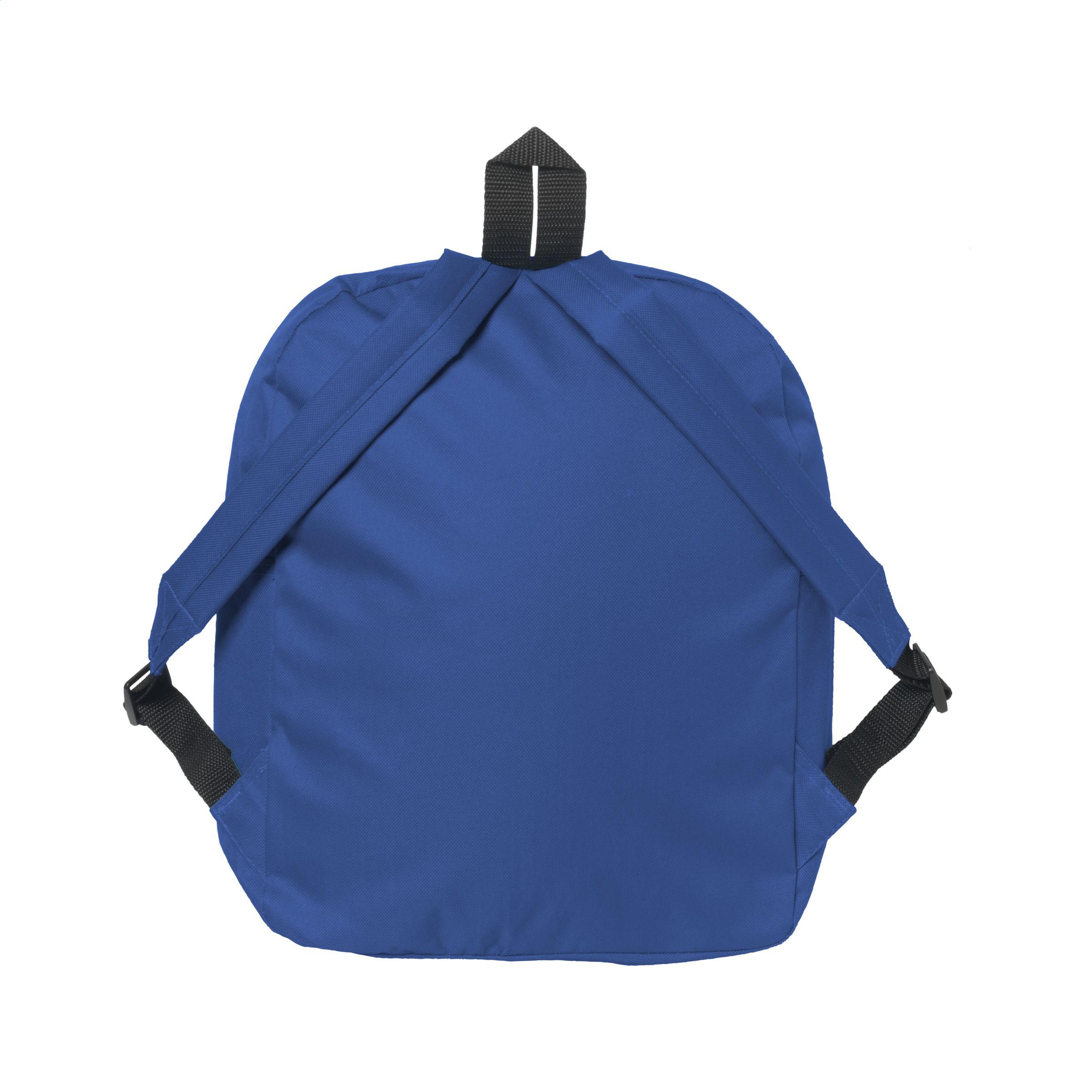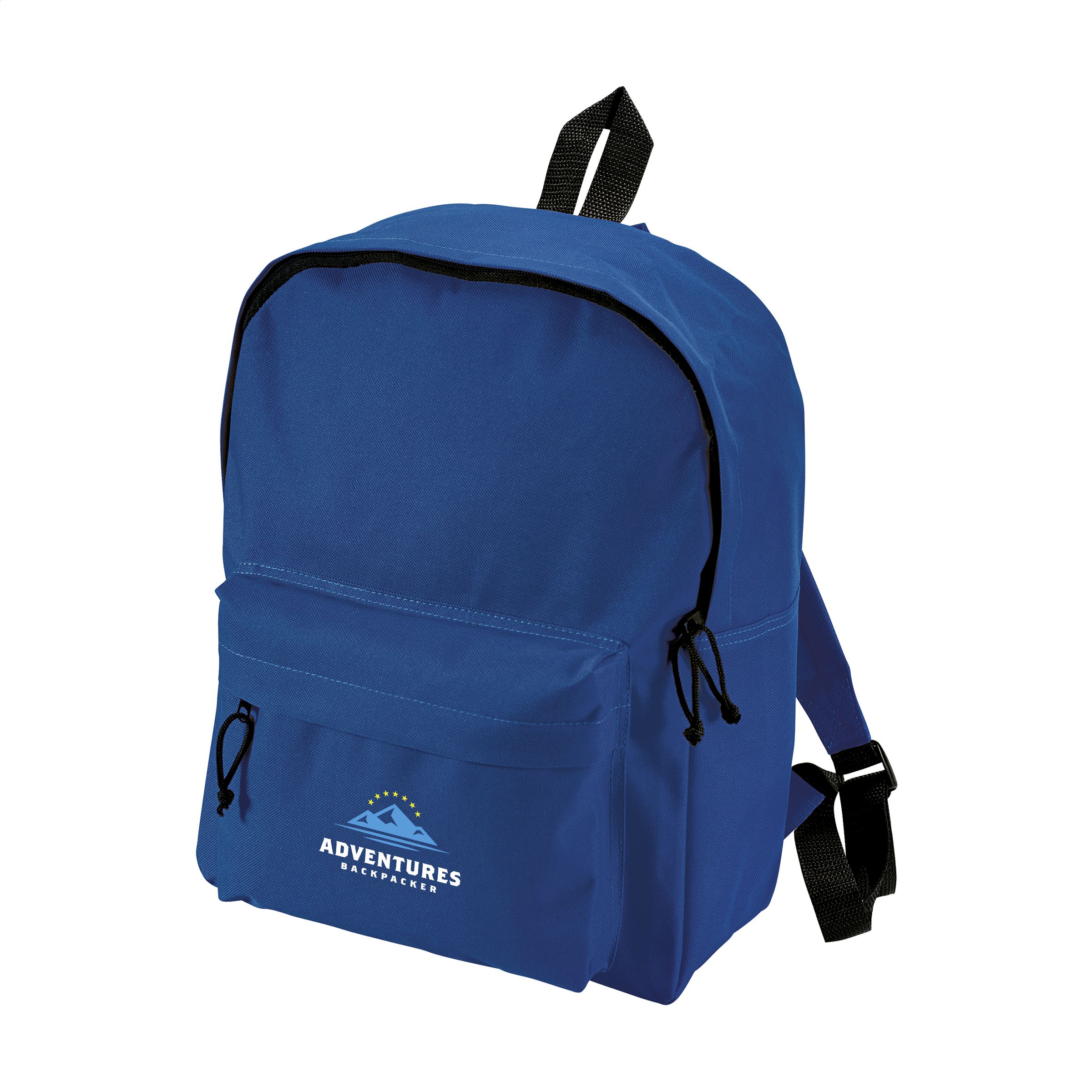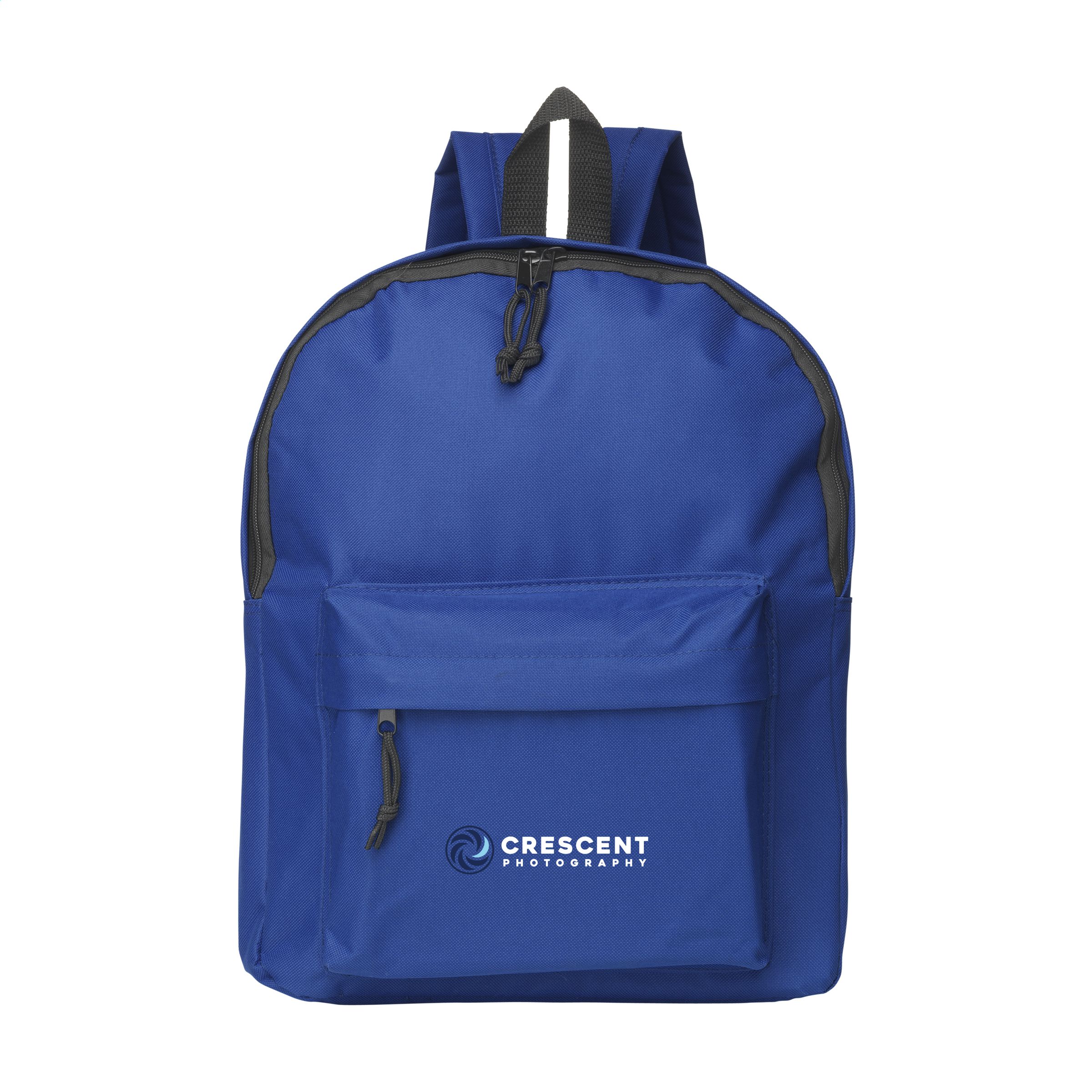 Backpack with large front pocket and adjustable, padded shoulder straps.