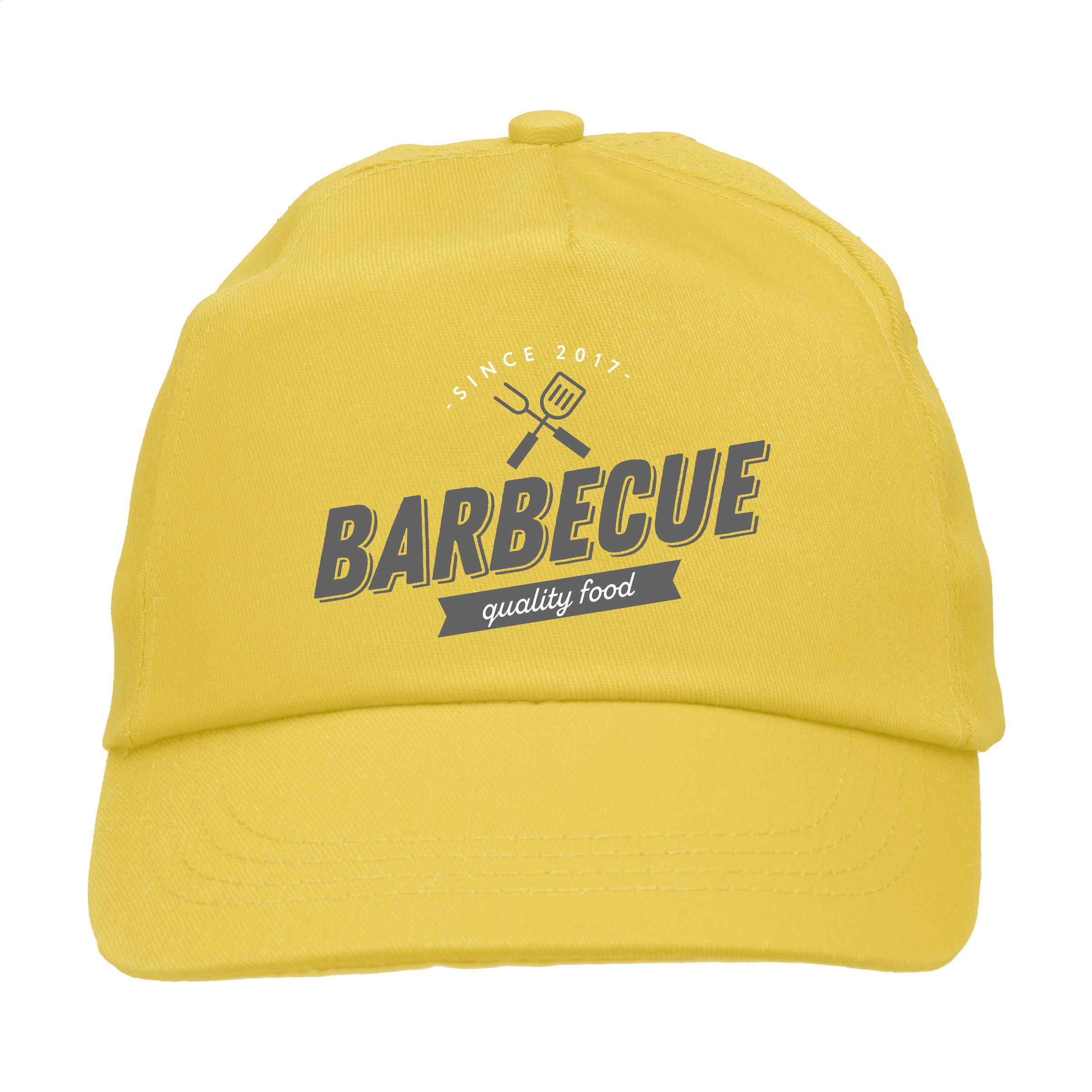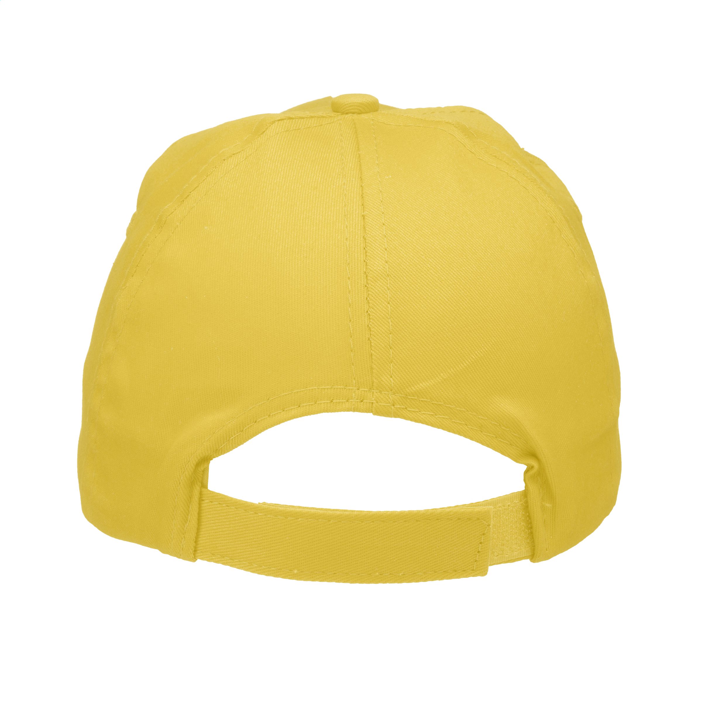 Baseball cap made of 100% cotton with pre-shaped peak and adjustable strap.