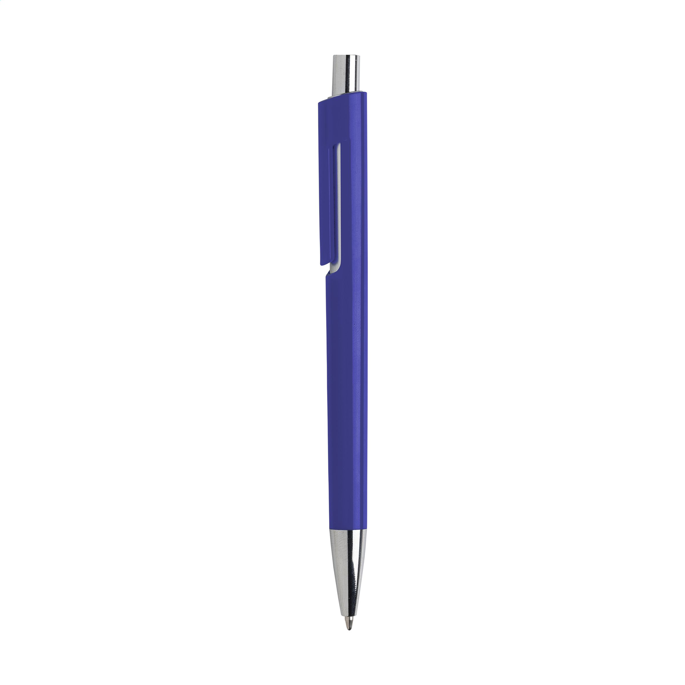Blue ink ballpoint pen with unique design: the barrel and clip of this pen is designed in one piece. With striking silver accent below the optical ‘floating’ clip.