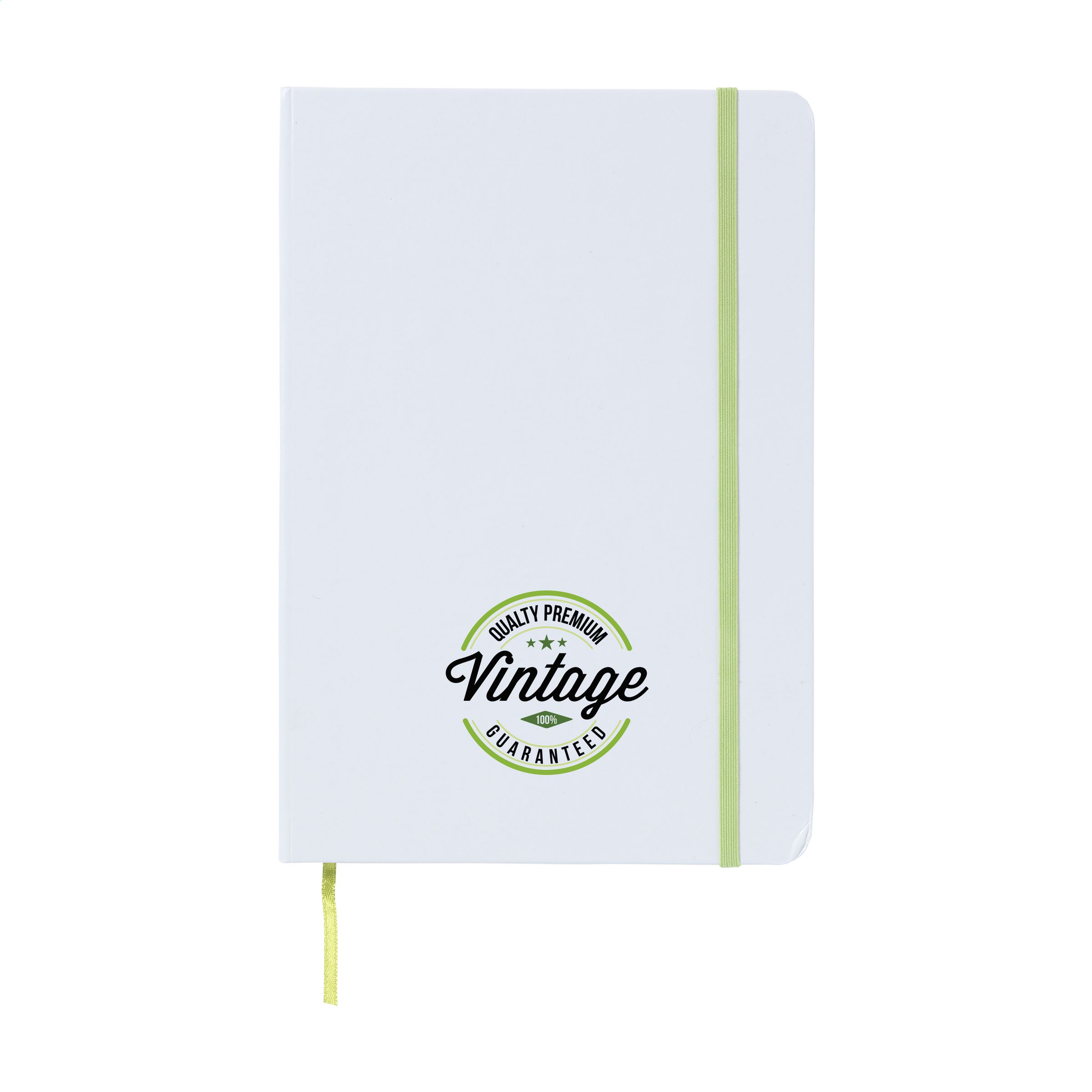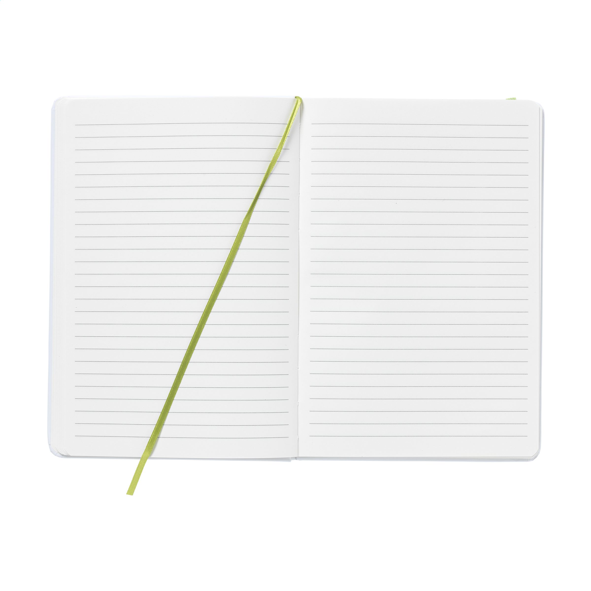 Practical and handy notebook in A5 format. With appr. 80 pages cream coloured, lined paper (70 g/m²), hard cover, elastic band and silk ribbon.