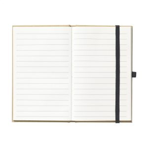 Practical and handy notebook in A5 format. With appr. 80 pages cream coloured, lined paper (70 g/m²), hard cover, elastic band and silk ribbon.