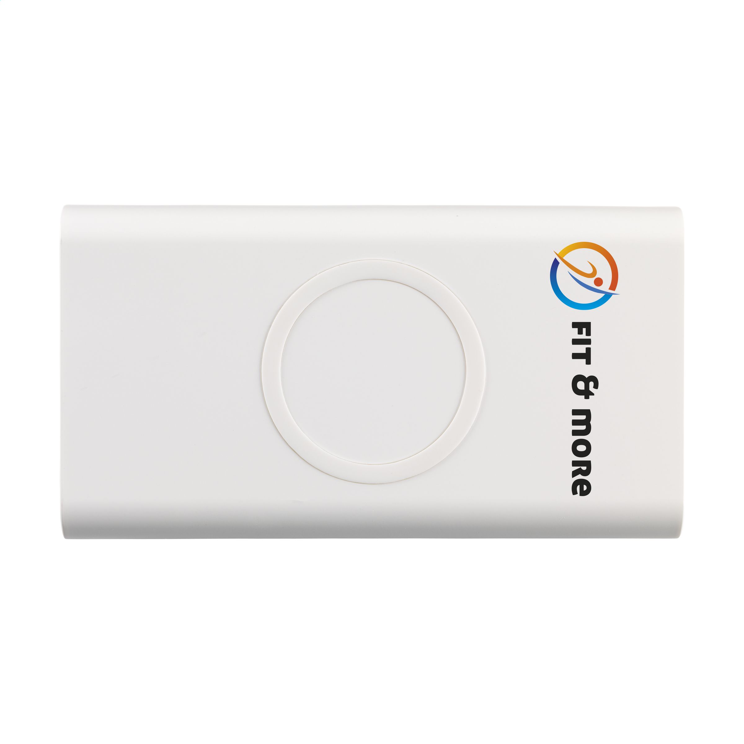 Very complete ABS wireless charging power bank with built-in Li-ion battery (8000mAh). With regular output, type-c input and 5W wireless charging technology. Wireless charging for mobile devices that support Qi wireless charging (newest generation Android and iPhones generation 8 or higher). Input: DC5V/2.1A. Output USB: DC5V/2.1A. Wireless output: DC5V/1A. With handy indicator lights and on/off button. Includes micro-USB charging cable (2A) and user manual. Each piece in a box.